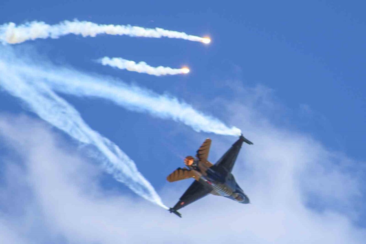 Erzurum’da miting alanı ve Olimpiyat Parkı’nı dolduran binlerce Erzurumlu, Türk Hava Kuvvetleri’nin göz bebeği, akrobasi timi SOLOTÜRK gösterisini büyük bir heyecanla takip etti.