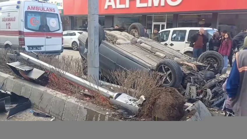 Erzurum’da meydana gelen bir trafik kazasında araç takla attı, araç bulunan şahıslar yaralandı.