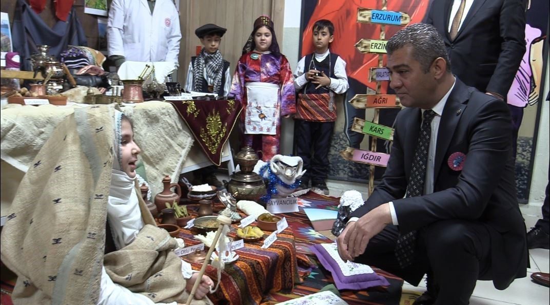 Organizasyona İl Milli Eğitim Müdürü Süleyman Ekici’de katıldı. Ekici’yi kapıda Nasrettin hoca kılığına giren ilkokul öğrencisi Selim ve Doğu kültürünü giyindiği kıyafetler ile temsil eden minik Miray karşıladı. Ekici önce minikler ile bu anı ölümsüzleştirmek adına fotoğraf çekildi, daha sonra programın açılışını kurdele kesimi ile yaptı. Açılışta konuşan Milli Eğitim Müdür Ekici en temel vazifelinin öğrencilere milli bilinci aşılamak olduğunu vurgulayarak. “Öğrencilerimize milli bilincini milli ve yerli kavramını, ülkemizde üretilen katma değerleri, farkına vardırabilmek” dedi.