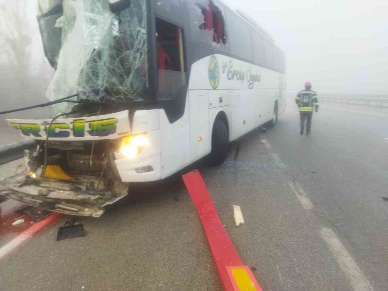 Erzurum’da dün geceden bu yana etkili olan sis kazalara sebep oldu. Pasinler ilçesinde kent merkezine bağlayan yolda da bir yolcu otobüsü ile tır çarpıştı, 13 kişi yaralandı.