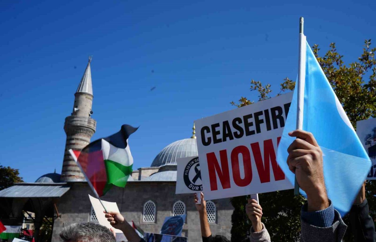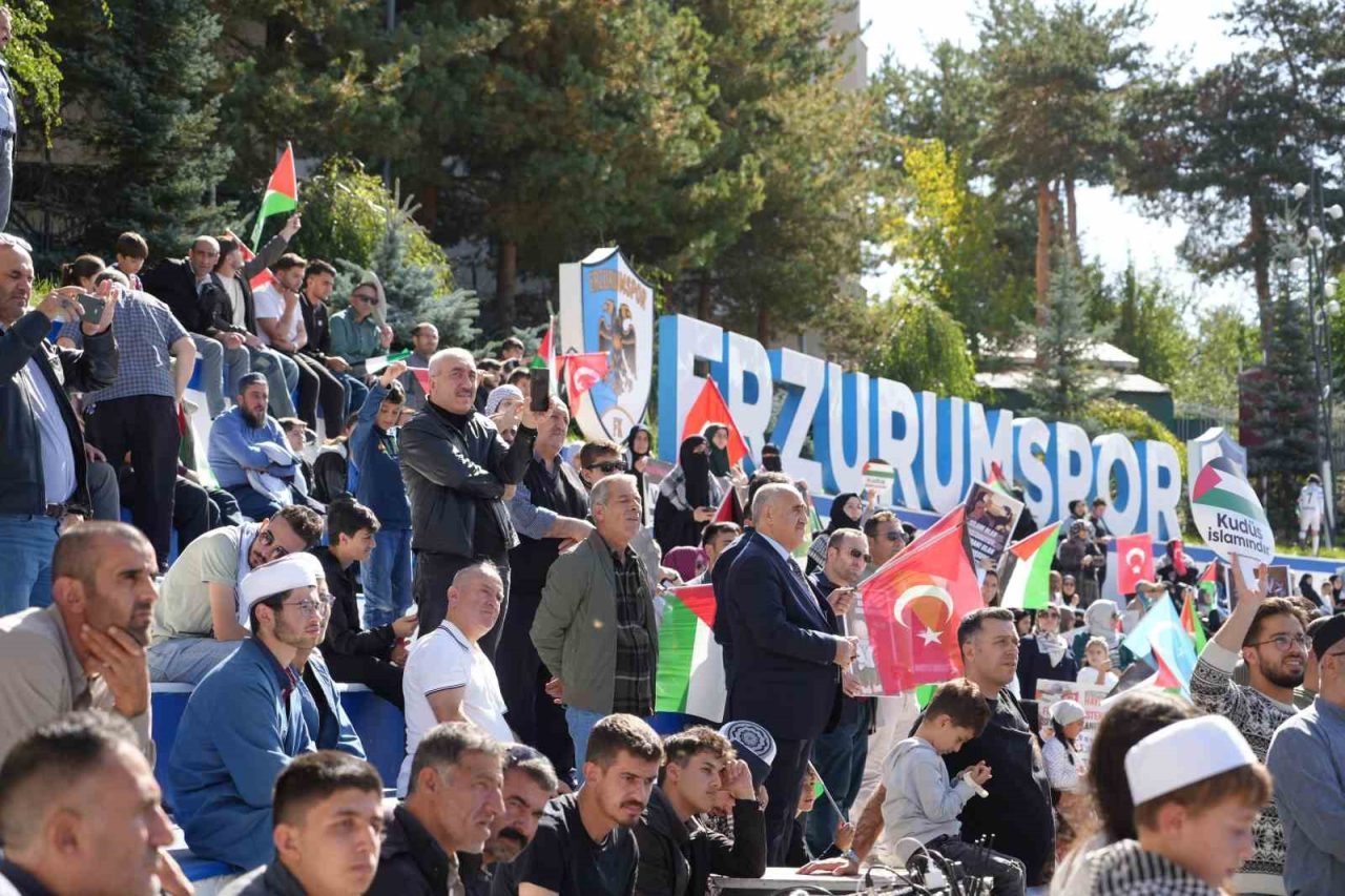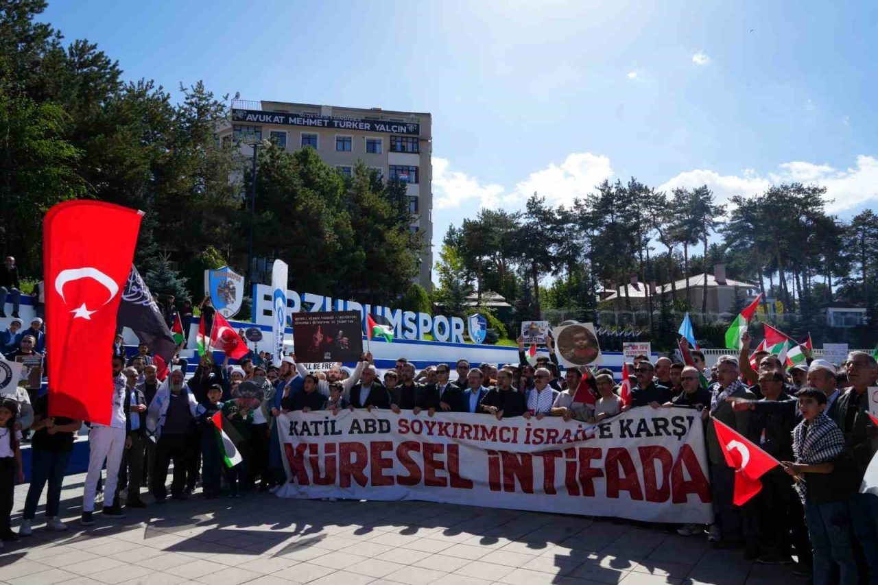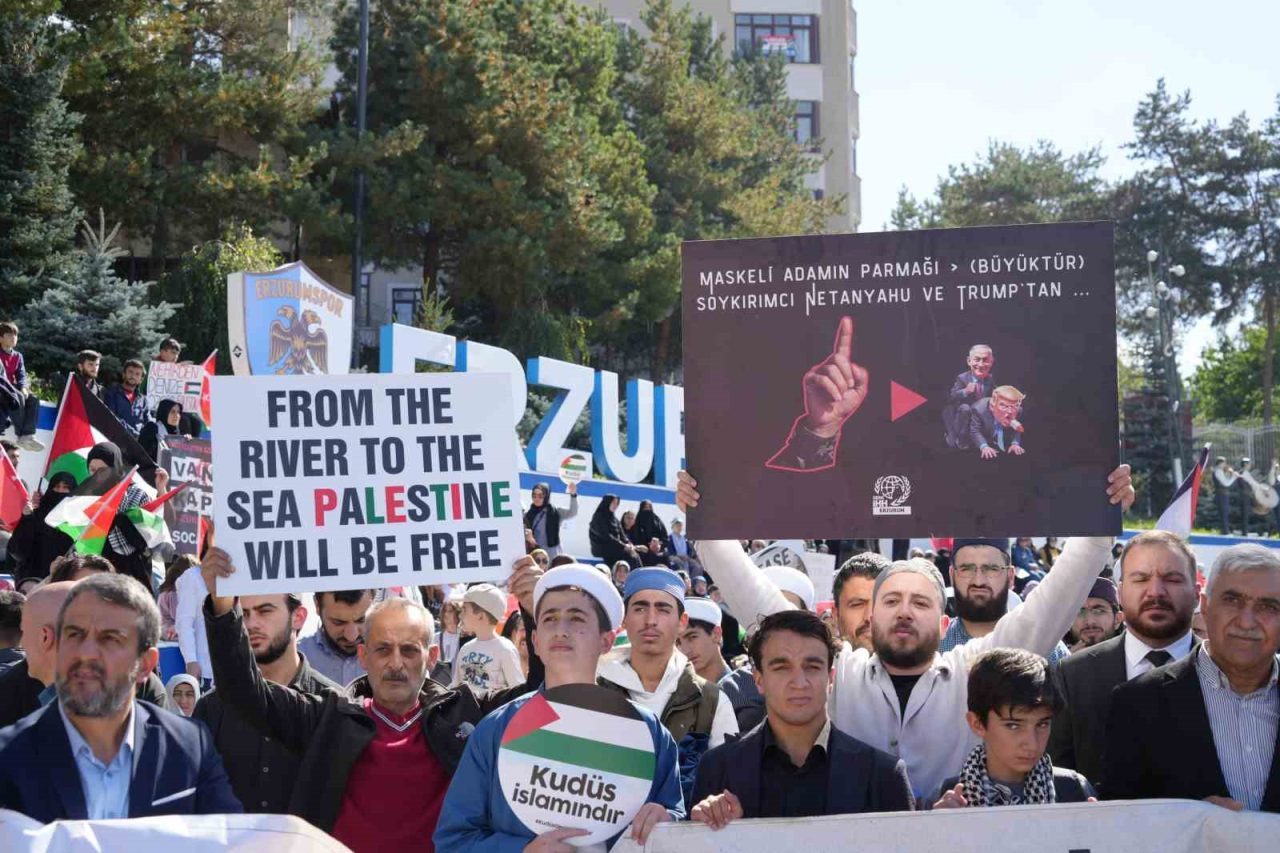 AK Parti Erzurum Milletvekili Selami Altınok, AK Parti İl Başkanı İbrahim Küçükoğlu, Yakutiye Belediye Başkanı Mahmut Uçar, STK temsilcileri ve vatandaşların katıldığı protesto Lala Mustafa Paşa Cami’nde başladı. Havuzbaşı Kent Meydanı’ndan biten protesto yürüyüşünde katılımcılar İsrail ve yandaşları aleyhine sloganlar attı. Erzurum Sivil Toplum Platformu Başkanı Abdulkerim Kavaz ve AK Parti Erzurum Milletvekili Selami Altınok, İsrail’in Gazze’deki katliamına engel olmak için herkesin sesini yükseltmesi ve mücadeleye katkı yapması gerektiğini dile getirdi.