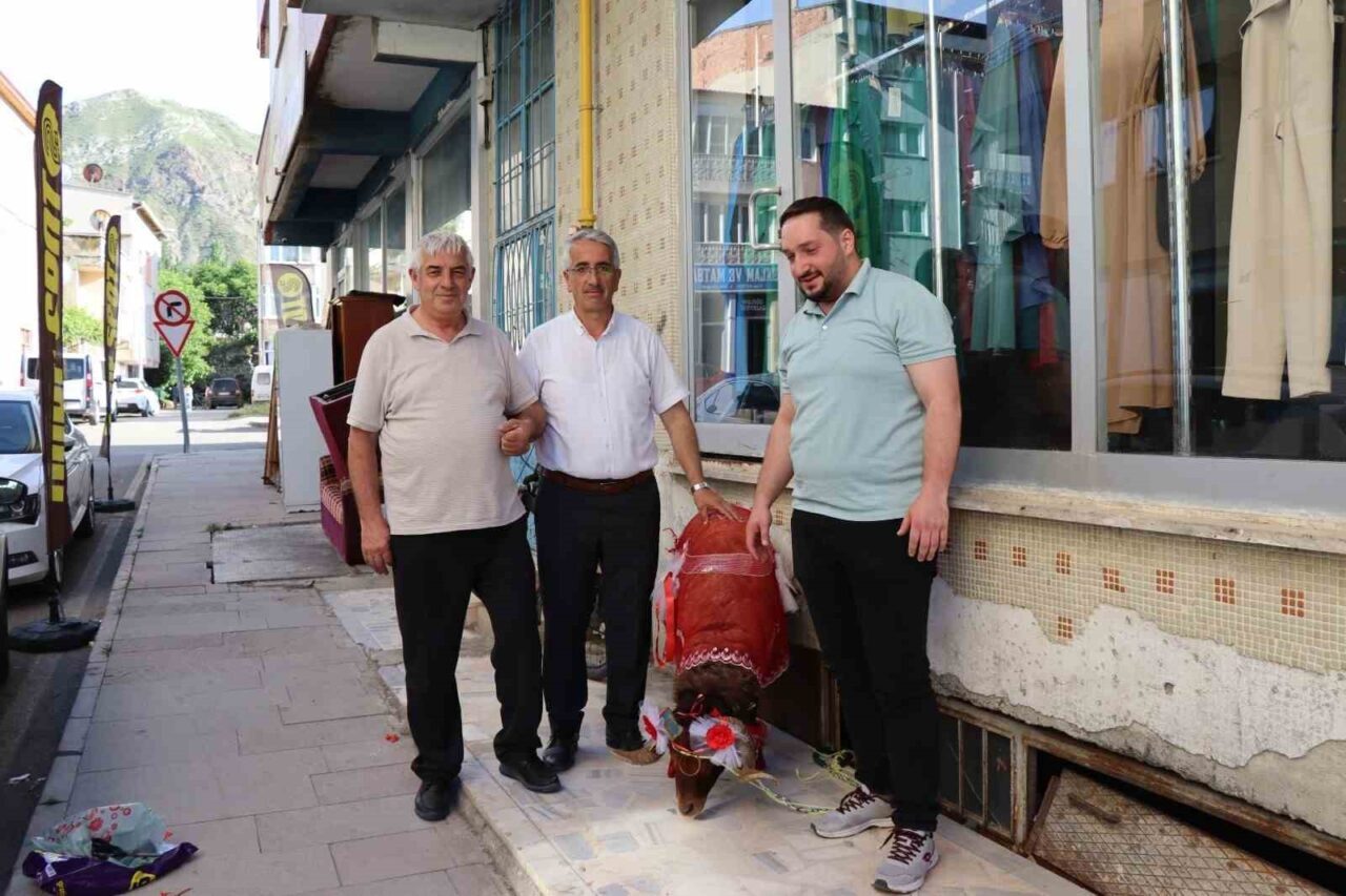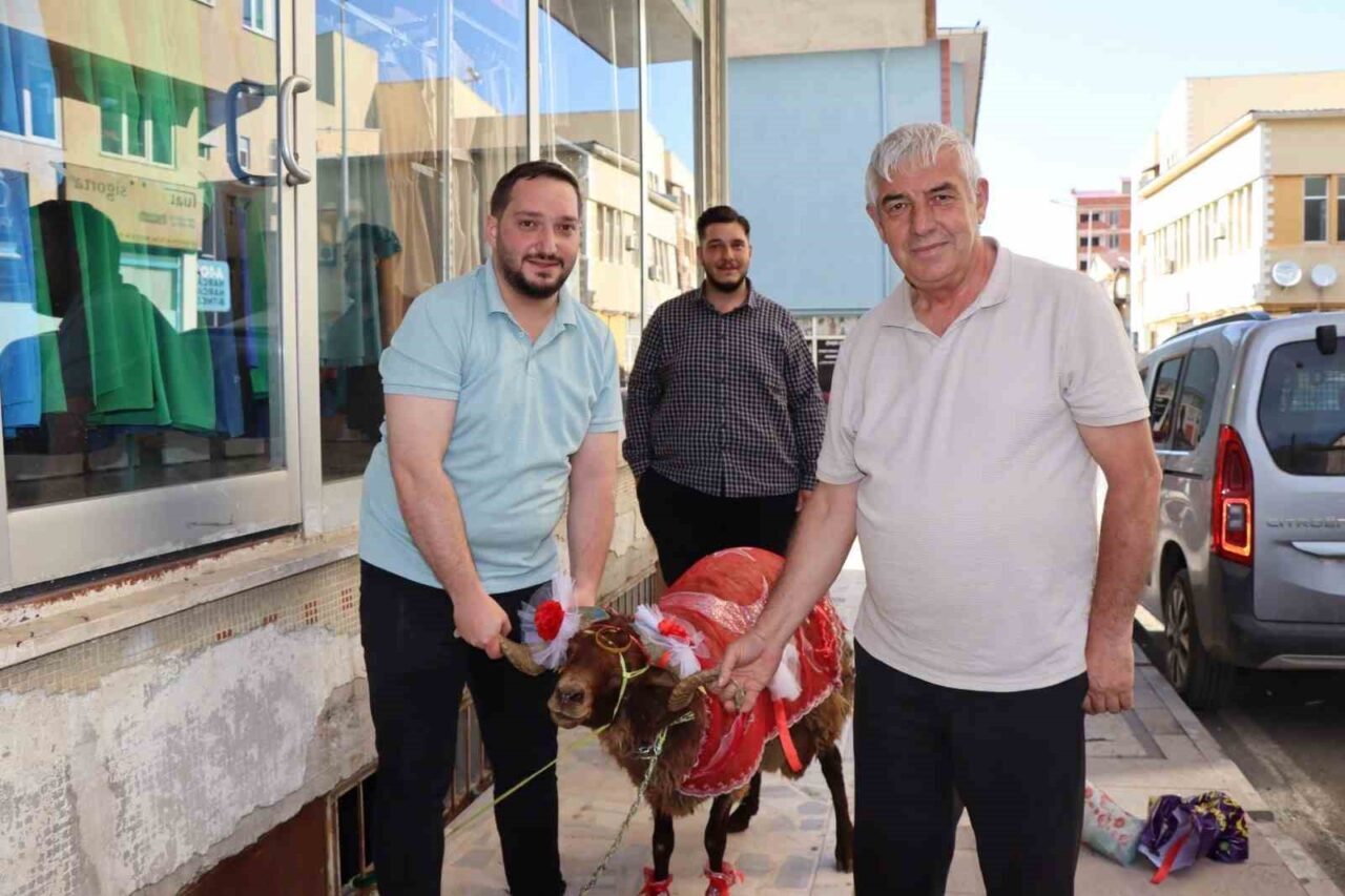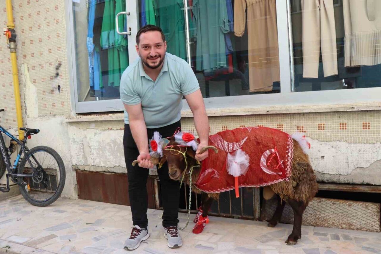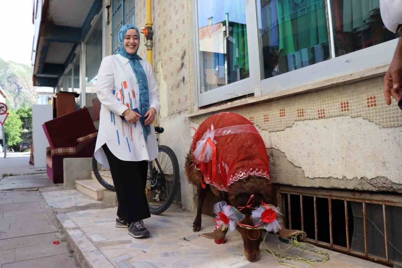 Erzurum’da ikamet eden Doktor Muhammet Enes Batman, nişanlısı Sema Coşkun için özel olarak süslediği kurbanlık koçu hazırlayıp ailesiyle birlikte Oltu’daki kız evine teslim etti. Yöre geleneğine göre nişanlı gençler, bayram öncesinde nişanlılarına süslenmiş kurbanlık koç hediye ediyor. Bu kapsamda damat adayı Muhammet Enes Batman, aldığı koçun boynuzlarına altın bilezik takarak onu özenle süsledi.