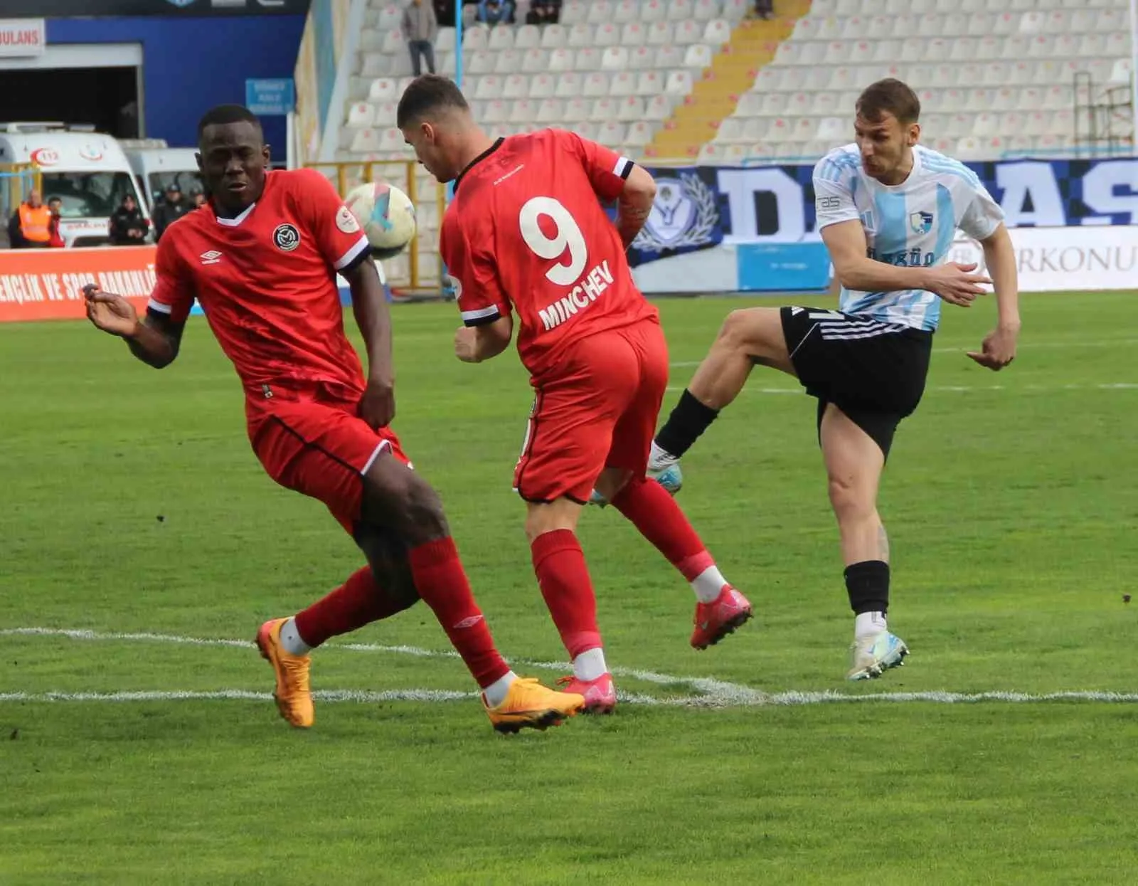 57. dakikada Oğuz’un ceza saha dışından sert vurdu defansa da çarpan top kaleci Ataberk’te kaldı.