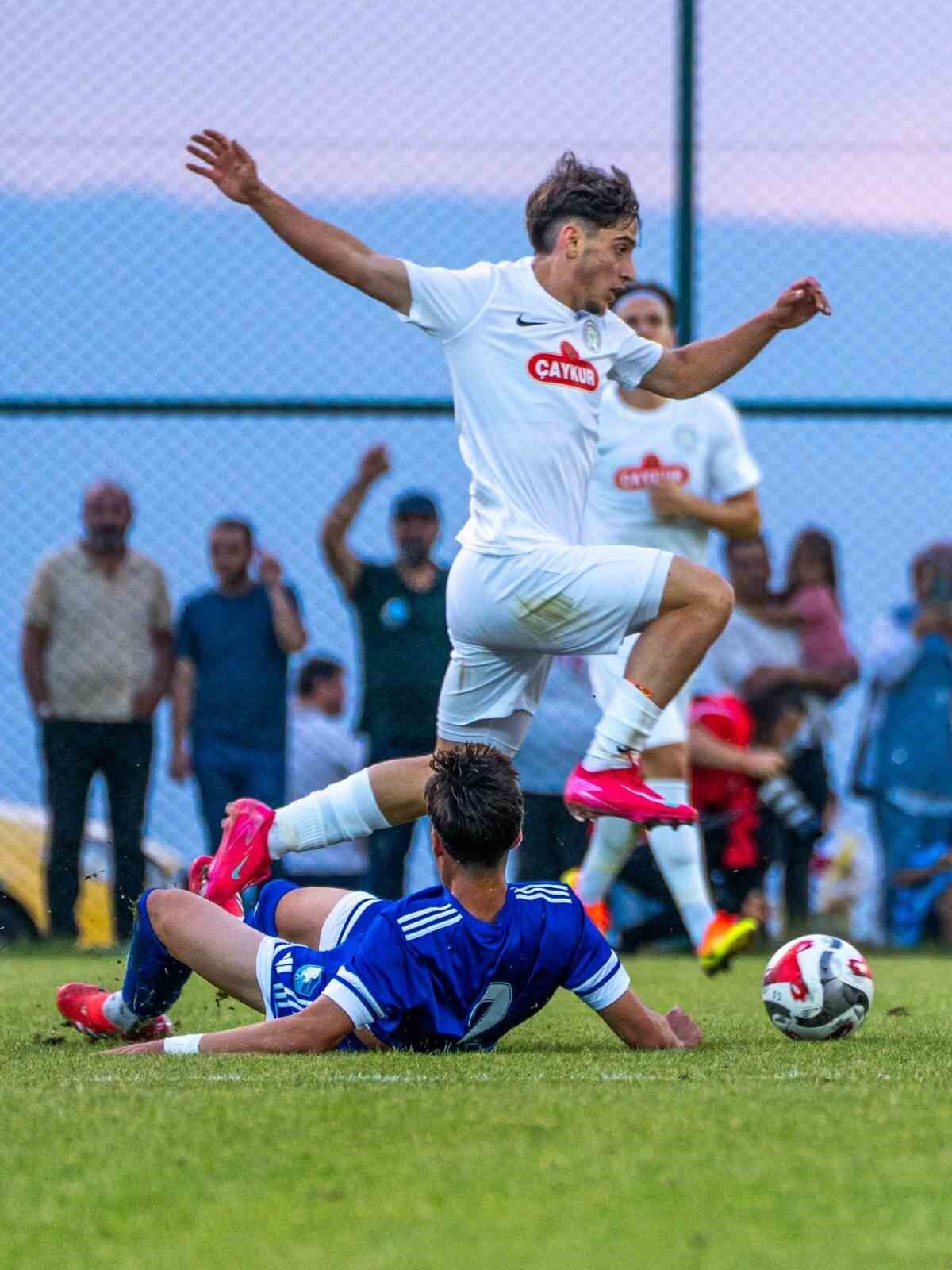 Erzurumspor FK, yeni sezon hazırlıkları kapsamında Süper Lig ekiplerinden Çaykur Rizespor ile hazırlık maçında karşı karşıya geldi. Palandöken Yüksek İrtifa Kamp Merkezi’nde oynanan mücadelede mavi-beyazlılar sahadan 1-0 galip ayrıldı.