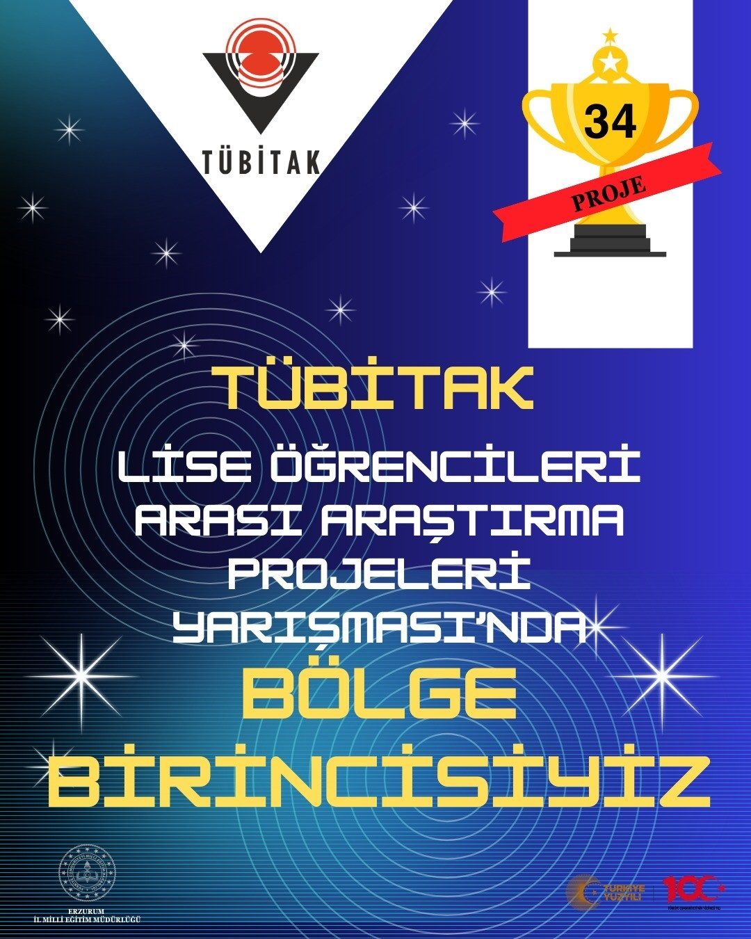 TÜBİTAK 57. Liseler Arası Öğrenci Projeleri Yarışması’nda Erzurum, nicelikte elde ettiği birinciliğin yanı sıra bu yıl bölge sergisine 34 proje ile en fazla proje gönderen il olarak nitelikte de zirveye adını yazdırdı.