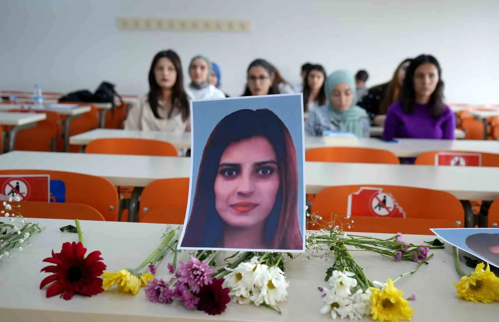 EBYÜ’DEKİ ÖĞRENCİ ARKADAŞLARI HATİCE’NİN SIRASINA ÇİÇEKLER BIRAKARAK KADINA ŞİDDETE TEPKİ GÖSTERDİLER