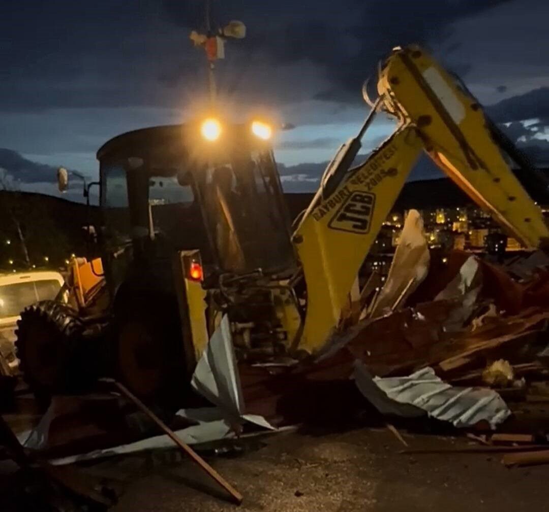 ETRAFA DAĞILAN ÇATI PARÇALARI YOLDAN KALDIRILDI