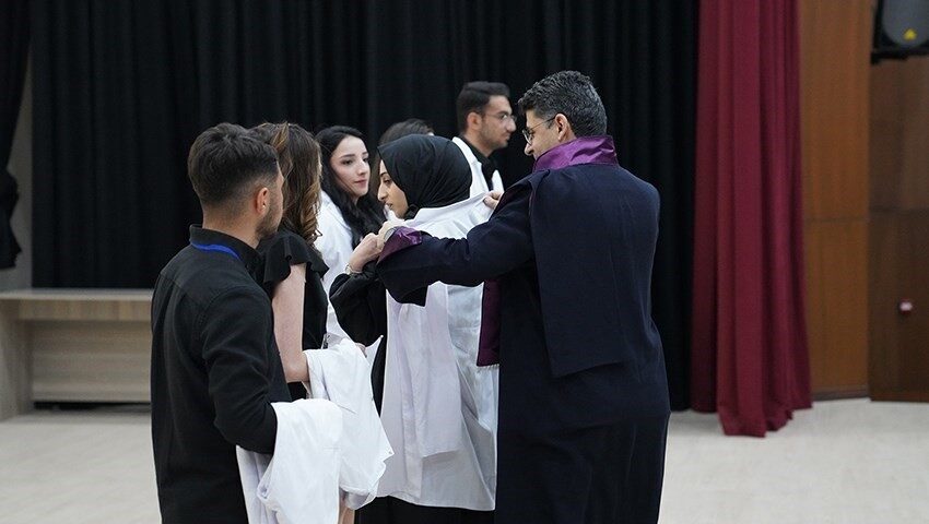 Beslenme ve Diyetetik, Fizyoterapi, Rehabilitasyon ve Hemşirelik bölümlerinde öğrenim gören 135 öğrencinin beyaz önlük giyme heyecanını yaşadığı programın açılış konuşmasını yapan Sağlık Bilimleri Fakültesi Dekan Yardımcısı Dr. Öğr. Üyesi İzzet Ülker, sağlık alanında eğitim gören gençlerin mesleklerine ilk adımlarını attıklarını ifade ederek, öğrencilere başarı dileklerinde bulundu.