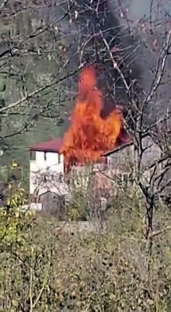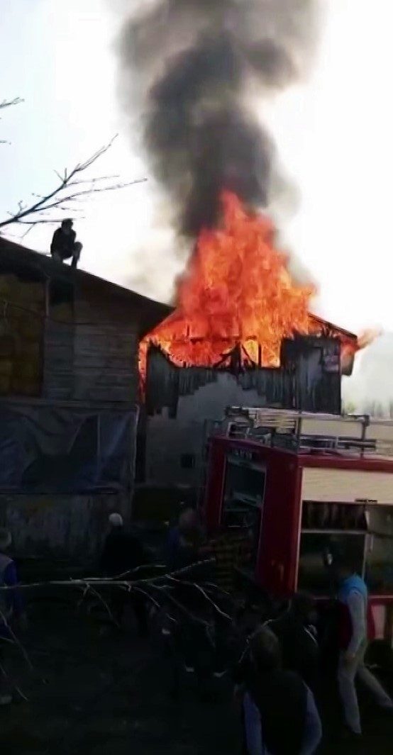 Sakarya’nın Hendek ilçesinde evde çıkan yangın bitişiğindeki samanlığa sıçradı. Ev ve samanlığın alev topuna döndüğü anlar cep telefonu kamerasıyla kaydedildi.