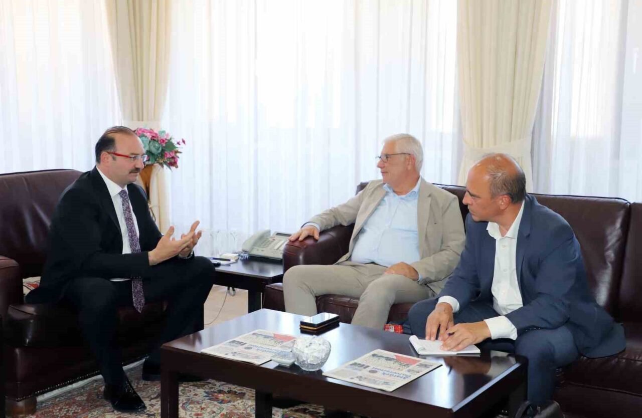Atatürk Üniversitesi; sağlık ve ilaç sektöründe stratejik öneme sahip projeleri hayata geçirme hedefi doğrultusunda yeni bir iş birliği adımı daha attı. Bu kapsamda, Türkiye’nin önde gelen sanayi kuruluşlarından EVYAP’ın Şirket Avukatı Altuğ Güzeldere ile Şirket İnşaat Sorumlusu Talat Yamaç, Atatürk Üniversitesi Rektörü Prof. Dr. Ahmet Hacımüftüoğlu ile bir araya geldi.