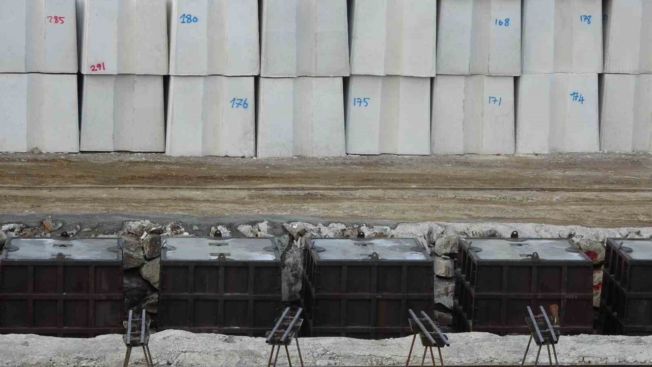 Trabzon’un Faroz Limanı’nı şiddetli dalgalardan korumak için yürütülen dalgakıran çalışmaları tüm hızıyla sürüyor. Proje kapsamında her biri 21 ton ağırlığında olan yaklaşık 5 bin adet beton blok kullanılacak.