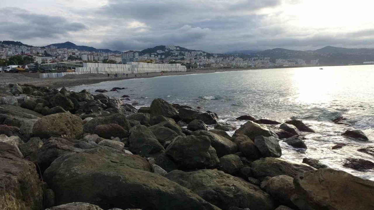 TRABZON’UN FAROZ LİMANI’NI ŞİDDETLİ DALGALARDAN KORUMAK İÇİN YÜRÜTÜLEN DALGAKIRAN ÇALIŞMALARI HIZIYLA SÜRÜYOR.