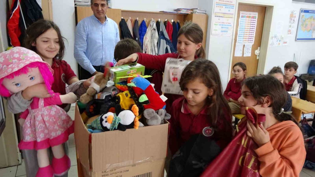 Trabzon’un Ortahisar ilçesinde Ahmet Saka İlkokulu öğrencileri, İsrail zulmü altındaki Gazze’ye destek olmak ve insani drama dikkat çekmek amacıyla düzenledikleri etkinlikle topladıkları oyuncakları Filistinli çocuklara göndermek üzere Trabzon Büyükşehir Belediyesi ekiplerine teslim etti.