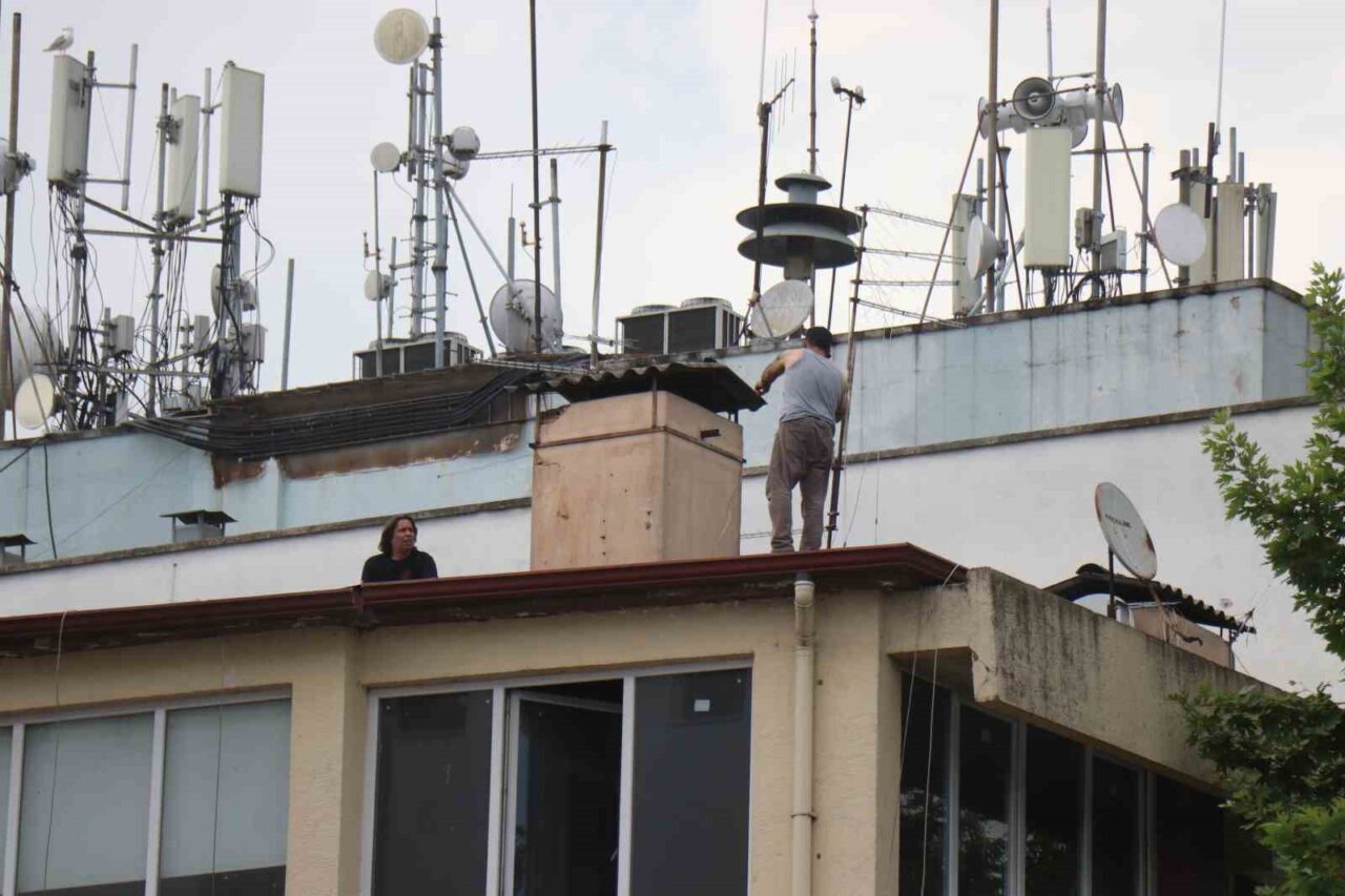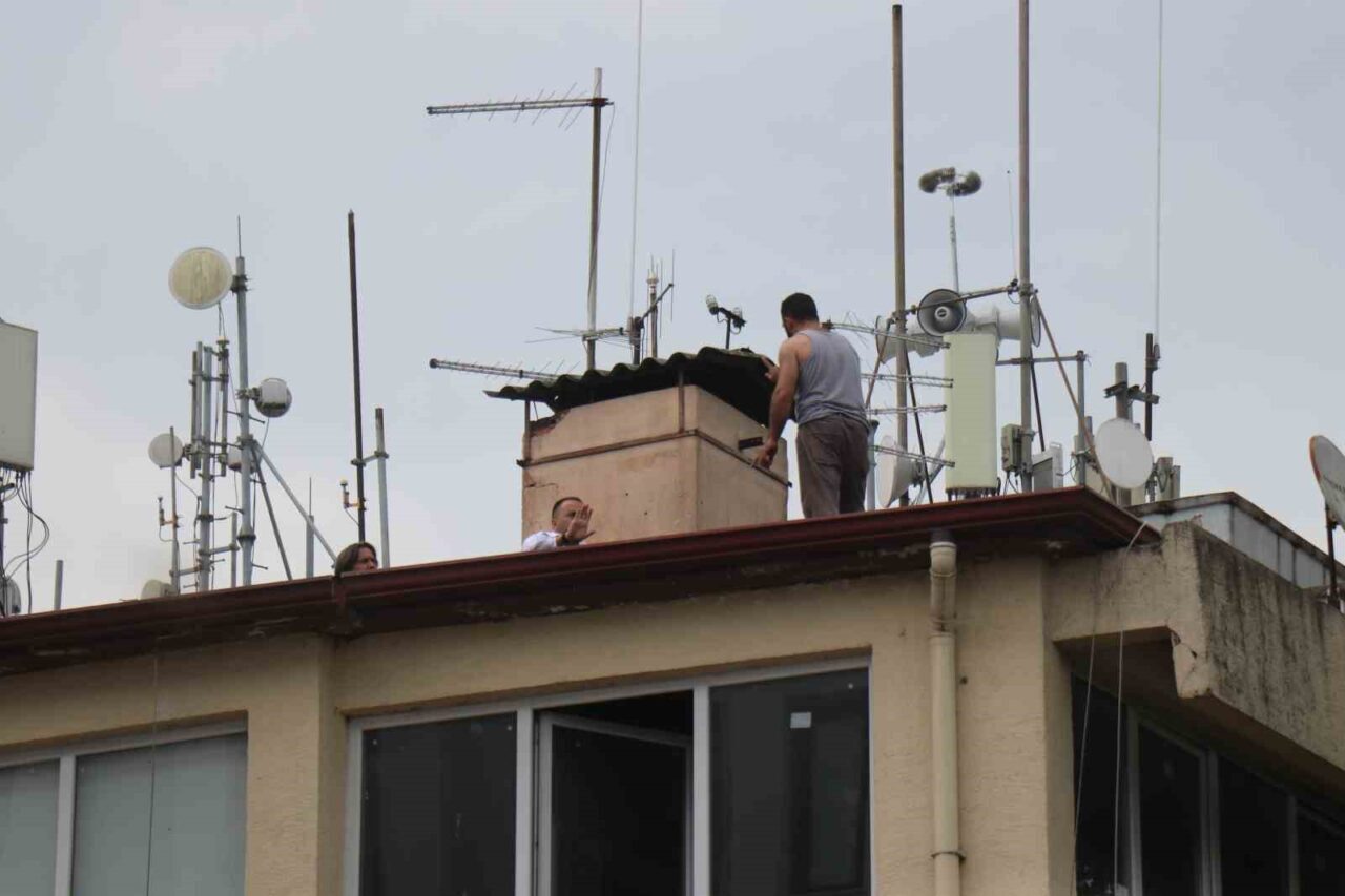 Olay, Sakarya’nın en işlek noktalarından biri olan Atatürk Bulvarı’nda meydana geldi. 4 katlı bir binanın çatısına çıkan İ.A. (33), paniğe yol açtı. İhbar üzerine olay yerine polis, itfaiye ve sağlık ekipleri sevk edildi. Çatıya çıkan polis ve sağlık ekipleri İ.A.’yı ikna etmeye çalışırken, itfaiye ekipleri ise muhtemel bir atlama durumuna karşı önlem aldı. Saatler süren ikna çalışmalarının ardından şahıs, çatıdan indirildi.