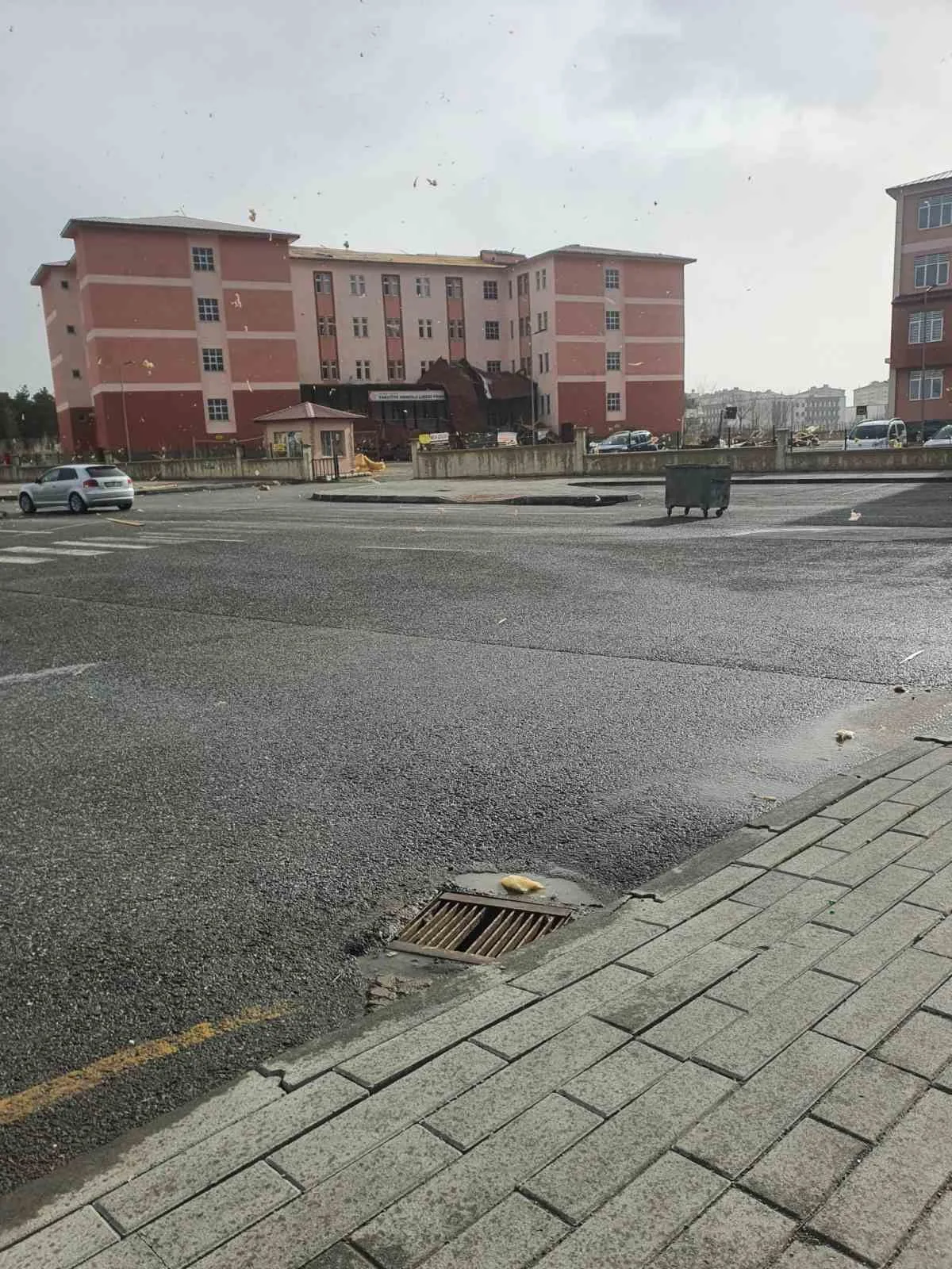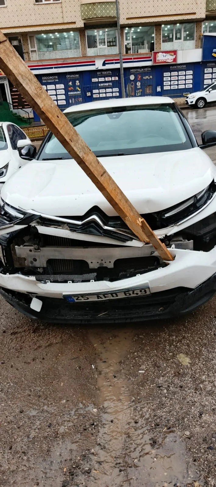 Erzurum’da aniden etkili olan fırtına çatıları uçurdu. Çatılardan düşen parçalar araçlara zarar verdi.