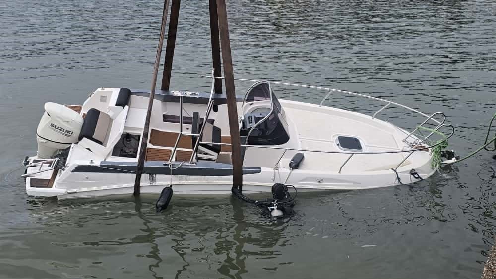 ZONGULDAK’IN KARADENİZ EREĞLİ İLÇESİNDE LİMAN İÇERİSİNDE FIRTINA VE SAĞANAK YAĞIŞ NEDENİYLE BATAN MİNİ YAT, VİNÇ YARDIMIYLA KARAYA ÇIKARILDI.