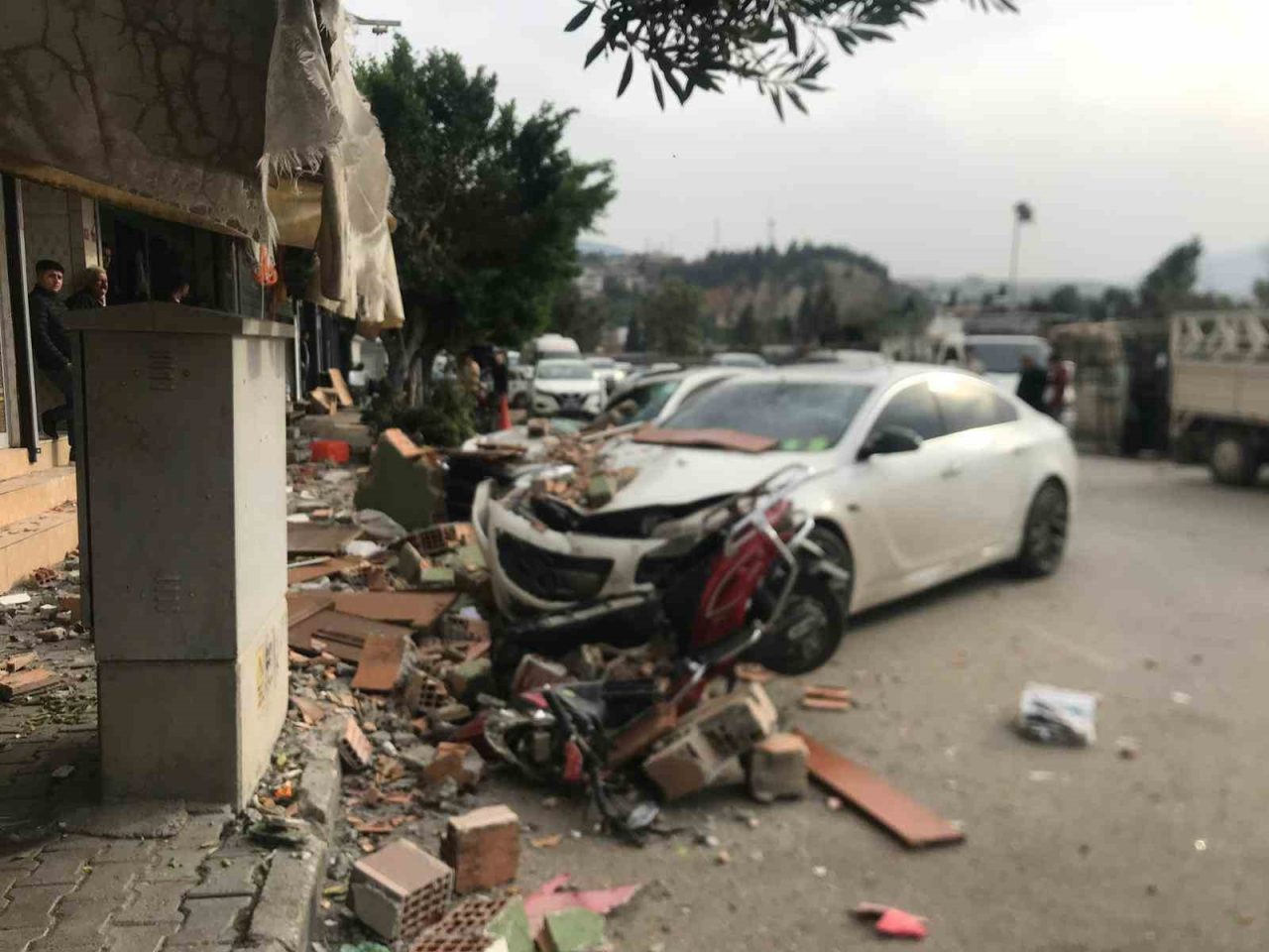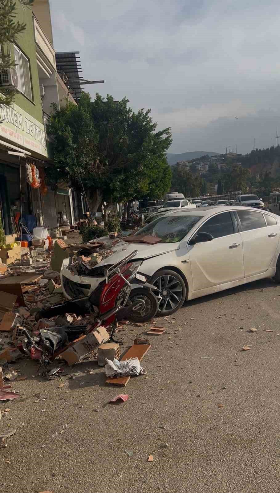 Olay anına tanık olan 16 yaşındaki Ferhat Atar, “Çok şiddetli bir fırtına vardı. Dükkanın önünde abimle oturuyorduk. Bir anda büyük bir toz bulutu yükseldi, araçlar pert oldu. Burada bir çocuğun motosikleti vardı, o da zarar gördü. Yaklaşık 10 dakika önce de uçan bir tahta, dükkan çalışanının aracının tamponunu ezmişti. Olay sırasında içeride oturan bir ablamız da çok korktu, biz hemen uzaklaştırdık. 112’yi aradık, polis ve olay yeri inceleme ekipleri geldi. Daha sonra bina sahipleri geldi ve araçlar çekildi. Gerçekten deprem gibiydi, çok büyük bir gürültü oldu” dedi.