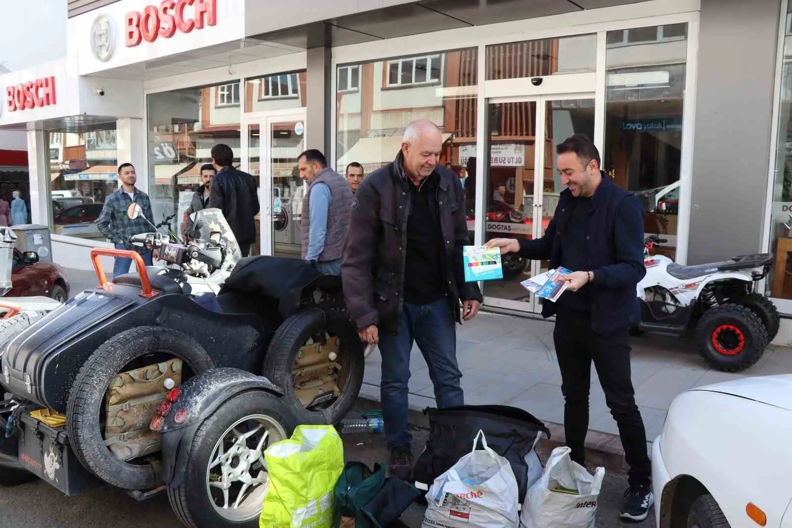 Siyah İnci Motosiklet Grubu Başkanı ve Oltulu esnaf Kaan Yavuz, projeyi duyduklarında çok etkilendiklerini belirterek, “Bay Patrice’yi ilçemizde misafir etmekten büyük mutluluk duyduk. Kendisi Fransa’dan Japonya’ya kadar sürecek, yaklaşık yedi ay devam edecek bir yolculuğa çıkmış. Bu süre boyunca, daha önce boya kalemiyle tanışmamış çocuklara 4 bin adet kalem hediye etmek istiyor. Biz de arkadaşlarımızla birlikte elimizden gelen desteği verdik. Teknik problemlerini çözdük ve bugün uğurlayacağız. Bu anlamlı projesinden dolayı kendisini tebrik ediyor, yolunun açık olmasını diliyoruz” dedi.