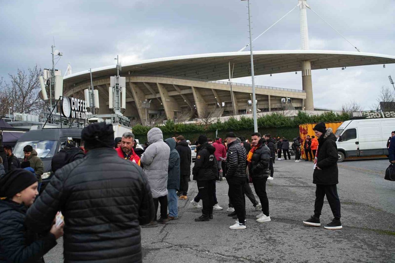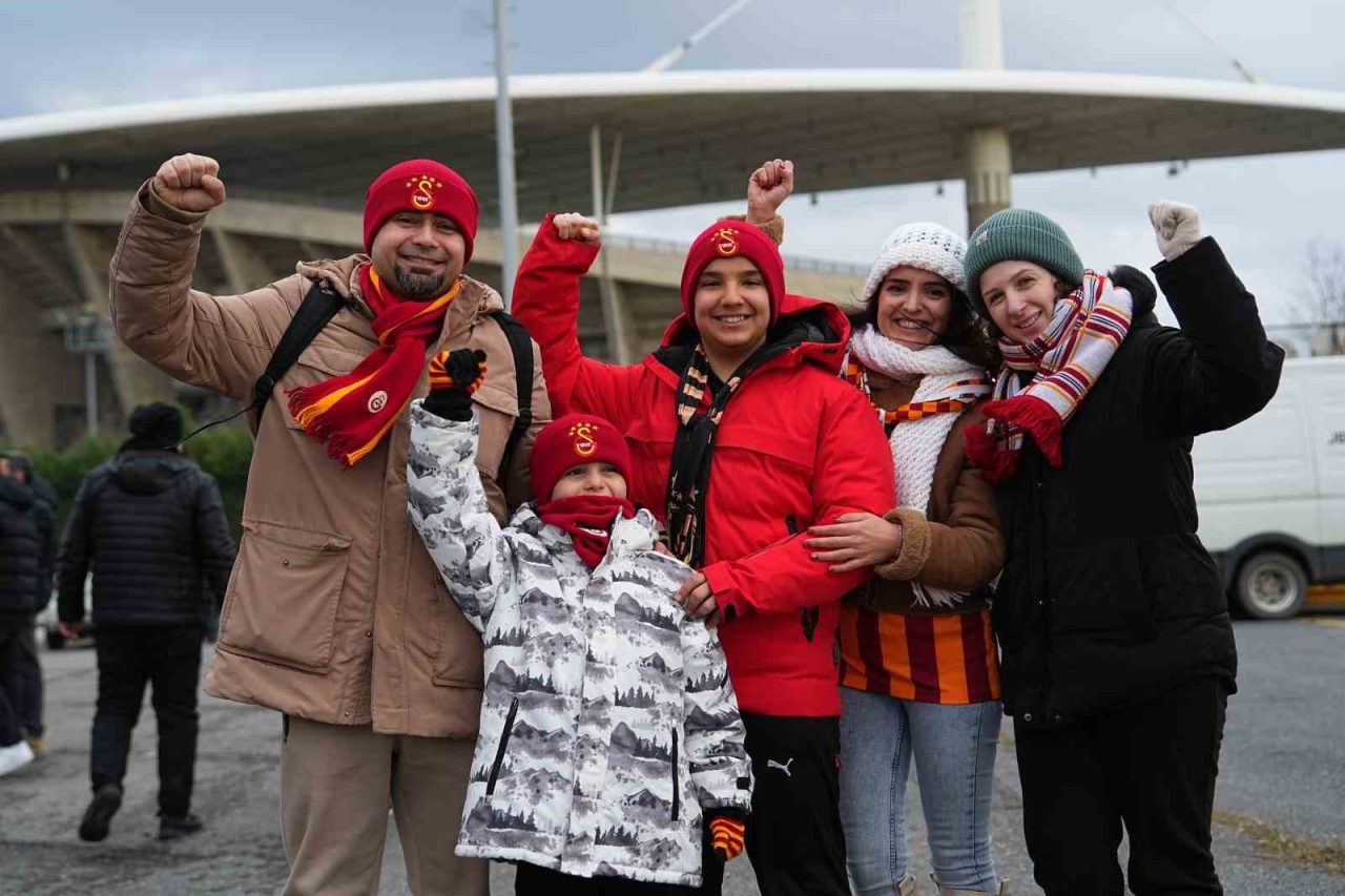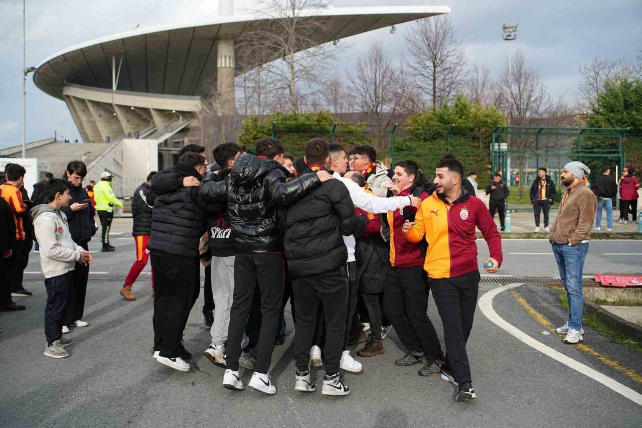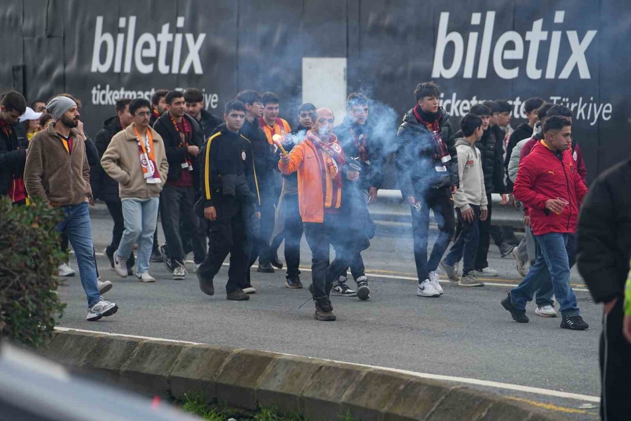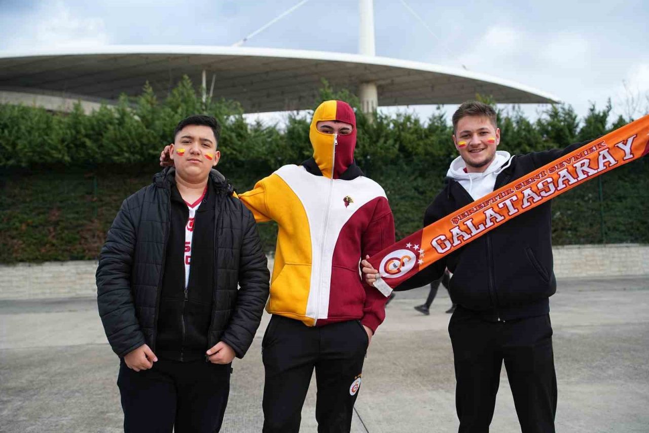 Galatasaraylı taraftarlar stat etrafında yaptıkları beste ve tezahüratlarla derbiye hazırlandı. Taraftarlar 15.45 itibarıyla stada giriş yaparken, kendilerine ayrılan bölüm olan Batı ve Güney Tribünü’ndeki yerlerini aldı.
