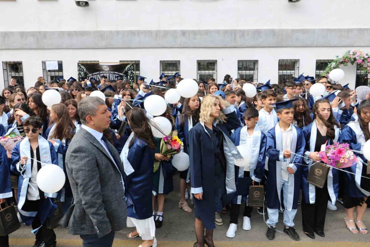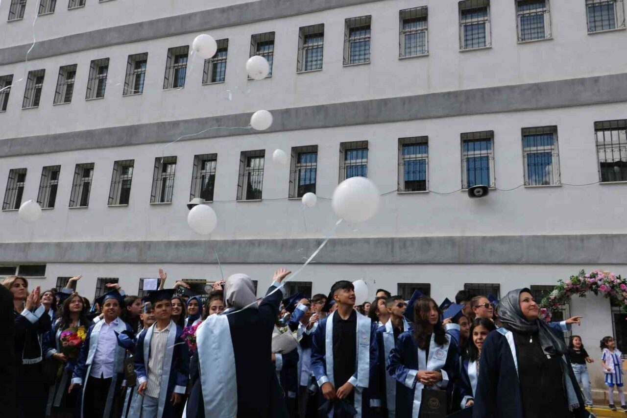 Yoğun bir katılımla gerçekleşen mezuniyet töreninde aileler, çocuklarının hazırladıkları etkinlikleri gururla izledi. Mezuniyet törenlerinde Gazze’yi unutmayan ve farkındalık oluşturmak isteyen öğrenciler, beyaz balonları gökyüzüne uçurdular.