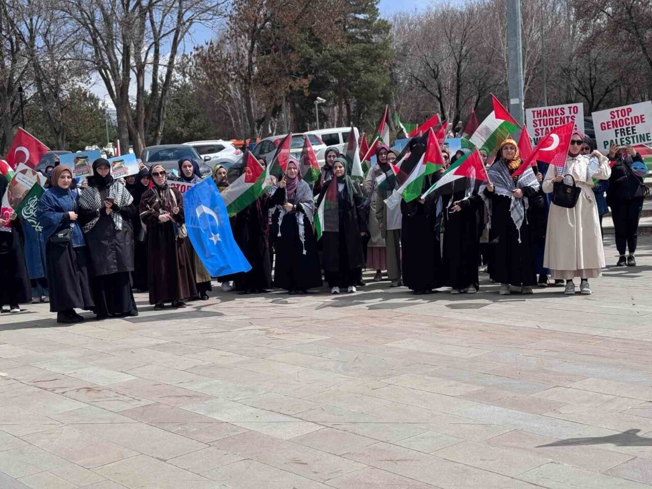 Erzurum’da İnsan Hak ve Hürriyetleri İnsani Yardım Derneği tarafından düzenlenen programda; Üniversitesi Camisi önünde buluşan öğrenciler ve katılımcılar yürüyüş yaptı, İsrail’in Gazze’ye yönelik saldırılarını protesto ve Doğu Türkistan’a destek verdiler.