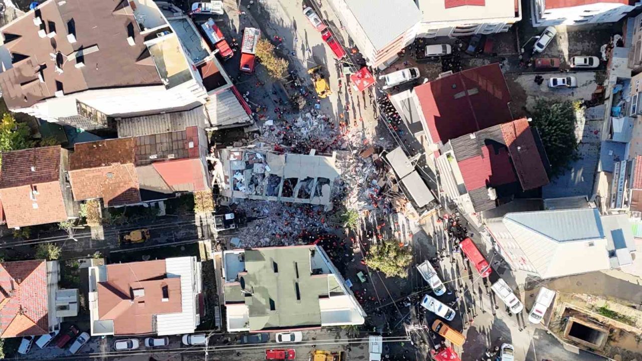 GEBZE’DE ÇÖKEN BİNA HAVADAN GÖRÜNTÜLENDİ