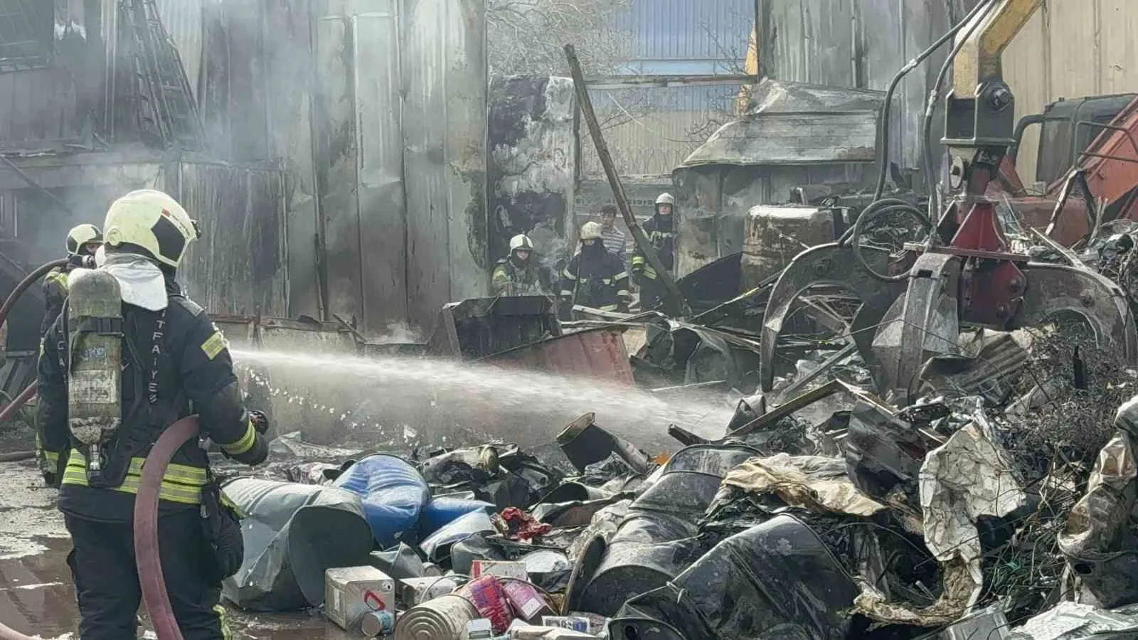 KOCAELİ’NİN GEBZE İLÇESİNDE HURDALIK ALANDA ÇIKAN YANGIN SEBEBİYLE GÖKYÜZÜ SİYAHA BÜRÜNDÜ. YANGIN İTFAİYE EKİPLERİ TARAFINDAN SÖNDÜRÜLÜRKEN, DEPODA MAHSUR KALAN KÖPEK İSE KURTARILDI.