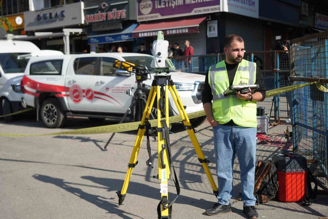 Tedbir amacıyla 300 metre yarıçapındaki tüm binalar incelenirken 16 bina, 27 iş yeri ve 72 bağımsız daire boşaltıldı. 8 üniversiteden ve TÜBİTAK’tan bilim insanları gelerek hem yer altını hem de üstünü kontrol ediyor. Bilirkişi, geo radar ile 135 derece açı içerisine giren tüm binaları tarıyor. Bu cihaz ile binalarda sapma veya hareketlenme varsa tespit edip raporlanıyor. İleri teknoloji jeodezik ölçüm cihazıyla bölgedeki herhangi bir deformasyon, sapma veya hareketliliği kayıt altına alınıyor. Binaların hareket edip etmediği orada bir statik problemin olup olmadığı ve zemin kontrolleri yapılıyor. Ekiplerin çalışmaları 5 gün süreceği öğrenilirken, yıkılan bine ve tahliye edilen bölge drone ile havadan görüntülendi.