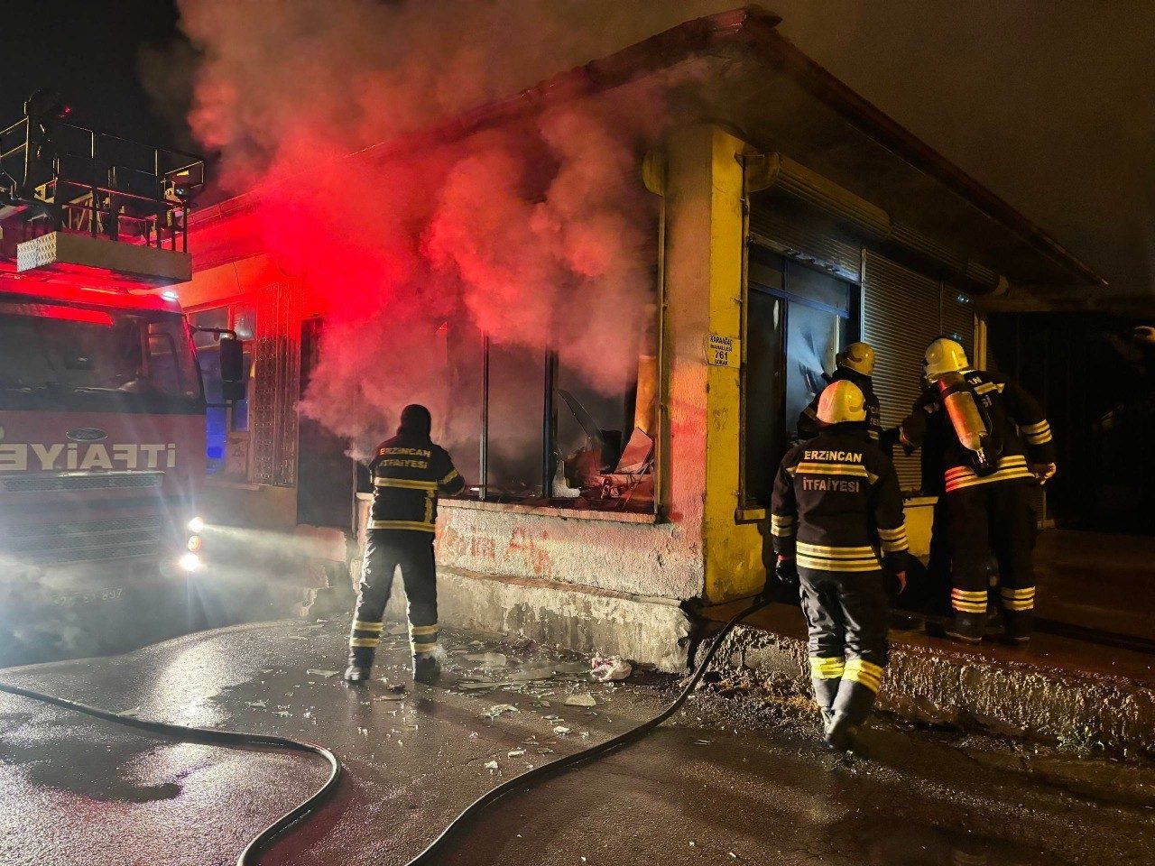 ERZİNCAN’DA ÇIKAN YANGINA KEPENKLER VE CAMLAR KIRILARAK MÜDAHALE EDİLDİ