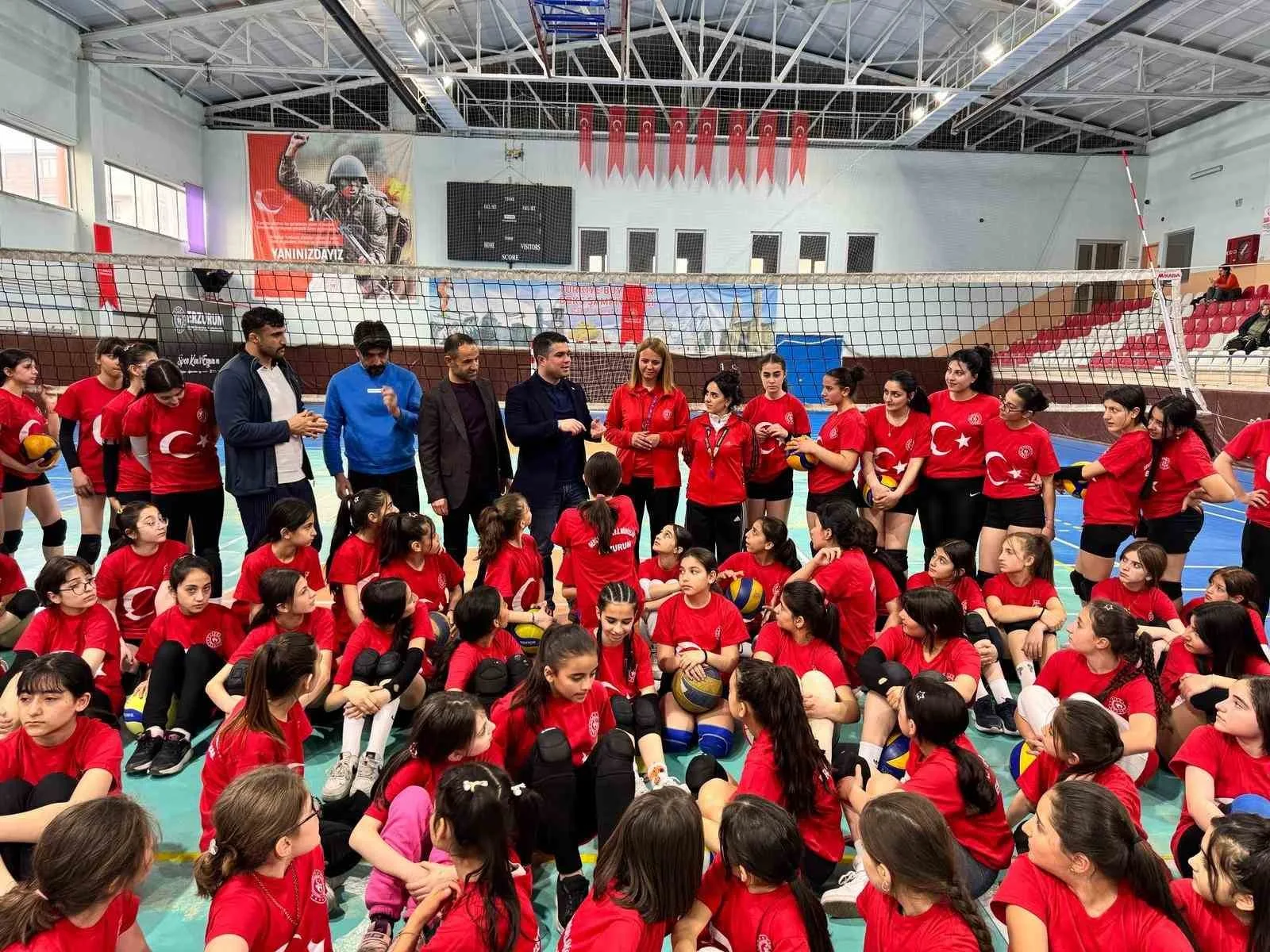 Erzurum GSİM Spor Hizmetleri Müdürü Erdoğan Dönmez ile Spor Faaliyetleri Şube Müdürü Ömer Karslı, Yakutiye Spor Salonu’nda kız voleybolcularının antrenmanını izledi. Antrenörler Elif Çelik ve Selma Erzincanlı ile sporcularla sohbet eden Spor Hizmetleri Müdürü Erdoğan Dönmez, geleceğin sultanlarına ay-yıldızlı tişört hediye etti.