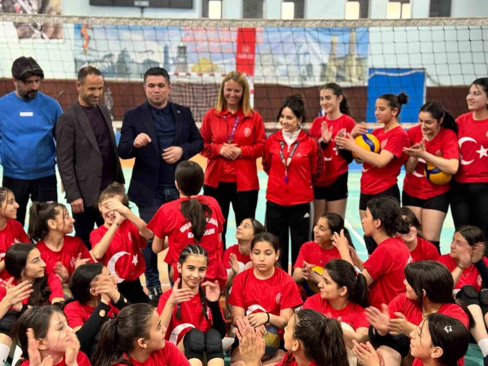 Geleceğin sultanları Erzurum’da yetişiyor. GSİM Spor Hizmetleri Müdürü Erdoğan Dönmez, minik, yıldız ve genç sultanlara Türk Bayrağı motifli tişört hediye etti.