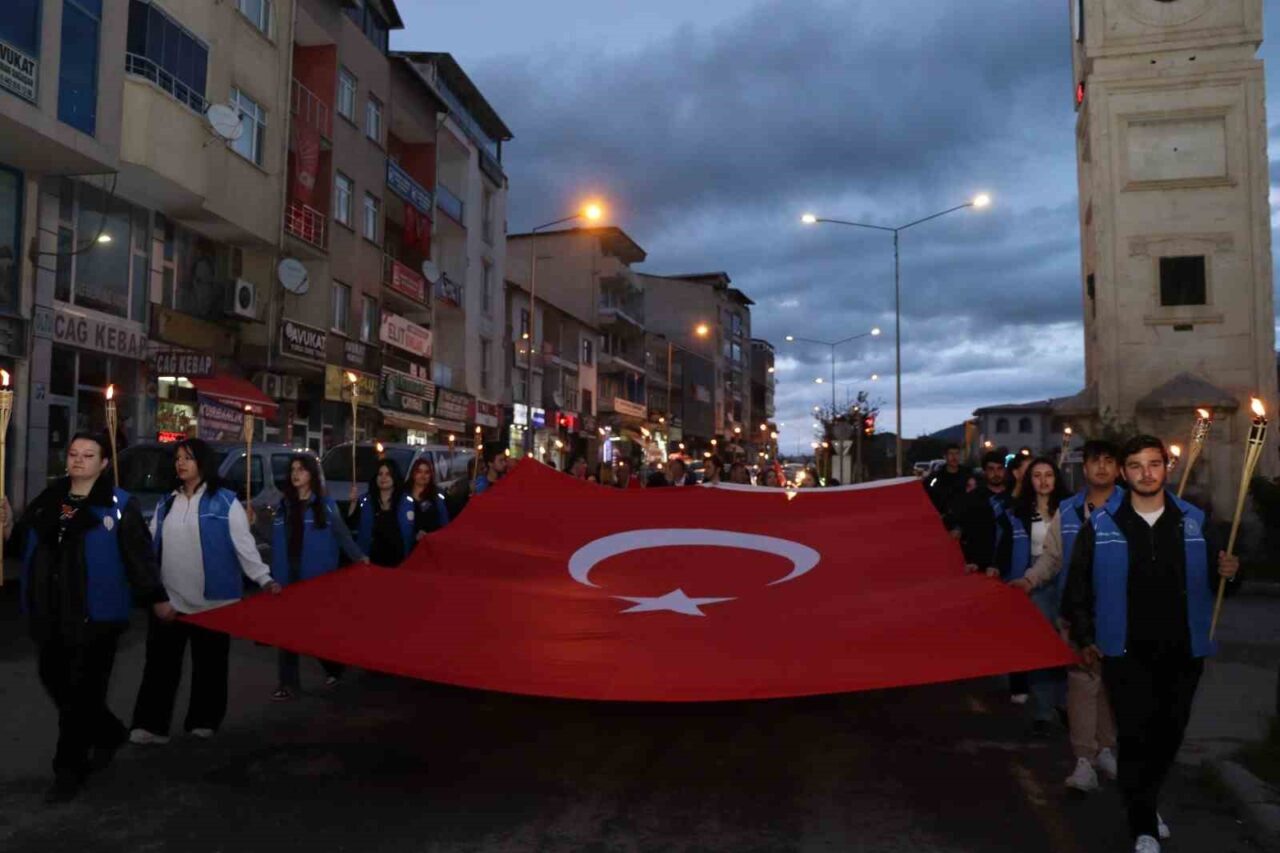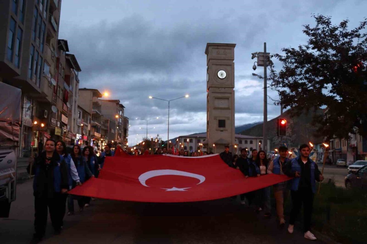 Erzurum’un Oltu ilçesinde 19 Mayıs Atatürk’ü Anma, Gençlik ve Spor Bayramı etkinlikleri kapsamında Gençlik Merkezi Müdürlüğü üyesi gençler, ellerinde Türk bayrakları ve yaktıkları meşalelerle anlamlı bir yürüyüş gerçekleştirdi.
