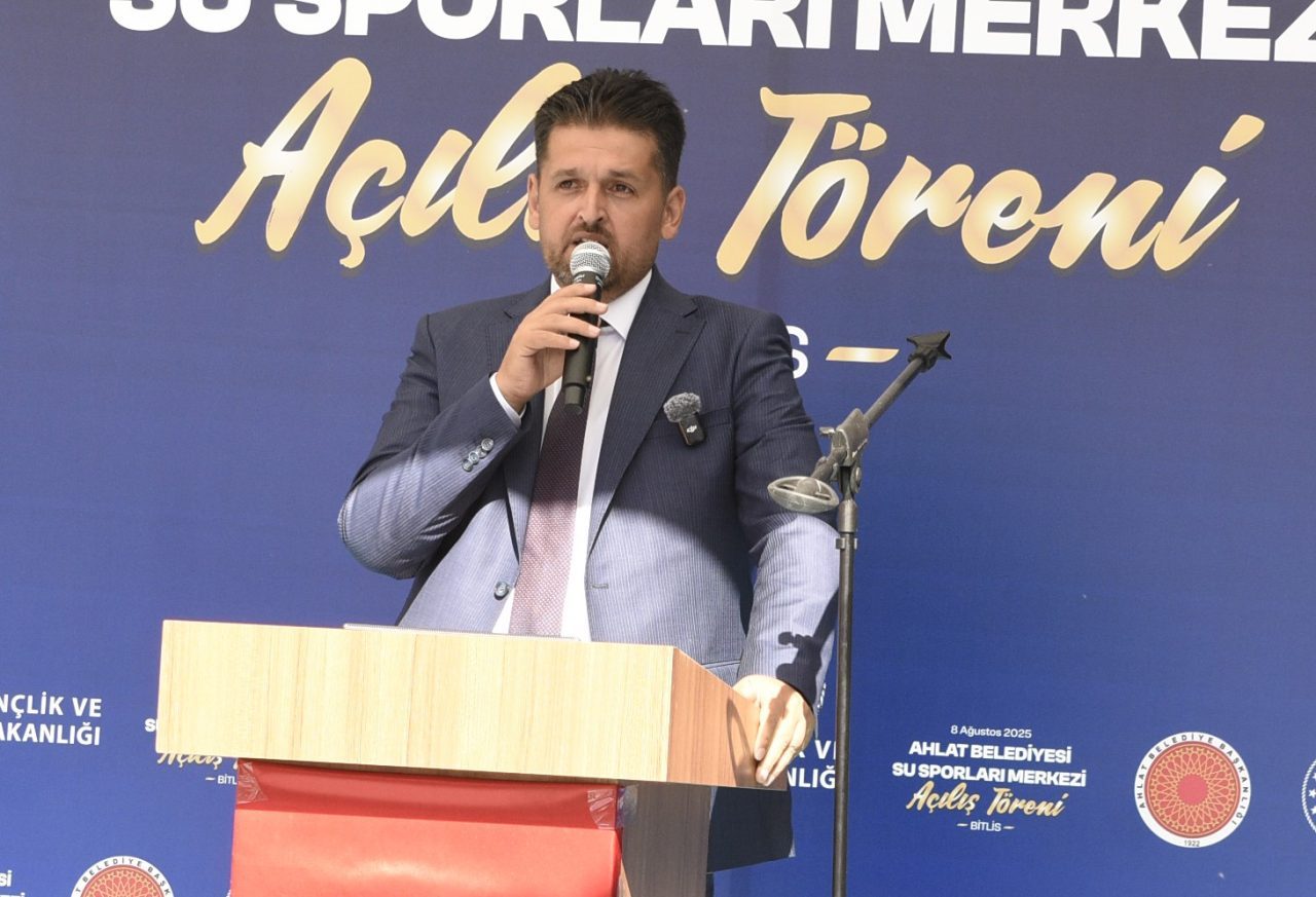GENÇLİK VE SPOR BAKANI OSMAN AŞKIN BAK, ‘BAHRİ AHLAT SU SPORLARI MERKEZİ’ AÇILIŞ PROGRAMINDA KONUŞTU.