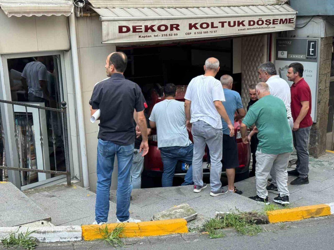 Giresun’un Kapu Mahallesi Topal Sokak’ta direksiyon hakimiyetini kaybeden sürücü bir dükkana girdi.