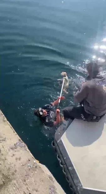 KOCAELİ’NİN GÖLCÜK İLÇESİNDE DENİZE DÜŞEN KEDİ, İTFAİYE VE DENİZ POLİSİ EKİPLERİ TARAFINDAN KURTARILARAK DOĞAL YAŞAM ALANINA BIRAKILDI.