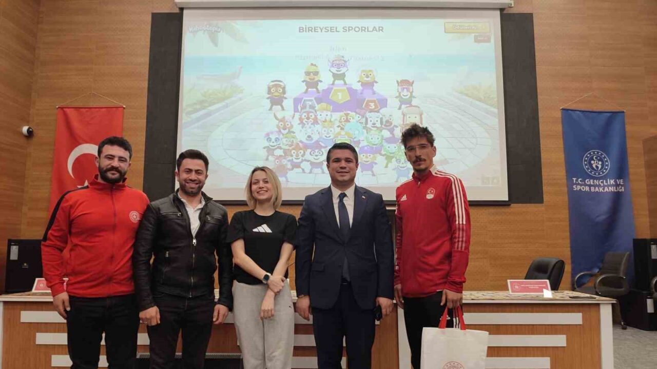 KEM’de yapılan Kahoot Bilgi yarışmasında antrenörlere spor branşlarına özgü soruların yanı sıra sporcu beslenmeleri, antrenman bilgisi ve genel kültür olmak üzere 15’er tane soru soruldu. Soruları doğru yanıtlayan antrenörlere hediye verildi.