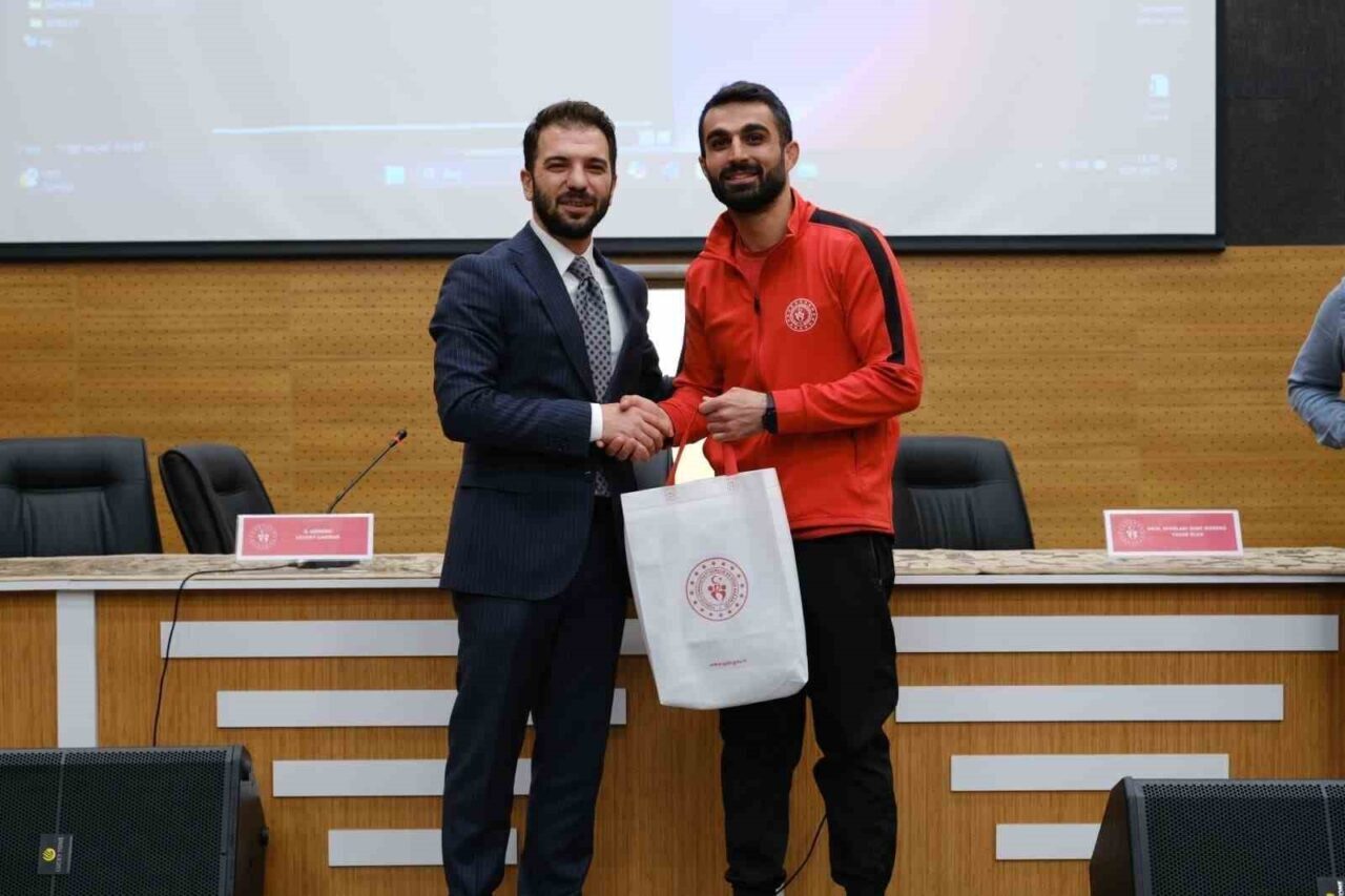 Spor Şube Müdürü Ömer Karslı, Sicil Lisans Şube Müdürü Hakan Kaya ve Yakutiye Gençlik ve Spor İlçe Müdürü İkram Sönmez’in de izlediği yarışmada sporculara hediyelerini takdim eden Spor Hizmetleri Müdürü Erdoğan Dönmez, “GSİM olarak İl Müdürü Levent Çakmur öncülüğünde ilklere imza atmaya devam ediyoruz. Hedefimiz spor hizmetlerinde Türkiye bir numarası olmak. Bunun için çalışıyoruz. Antrenörlerimizle değerlendirme toplantılarının yanı sıra, bu tür bilgi yarışmalarıyla da onların bilgilerini taze tutuyoruz. Başarılı olan tüm antrenörlerimizi tebrik ediyorum” dedi.