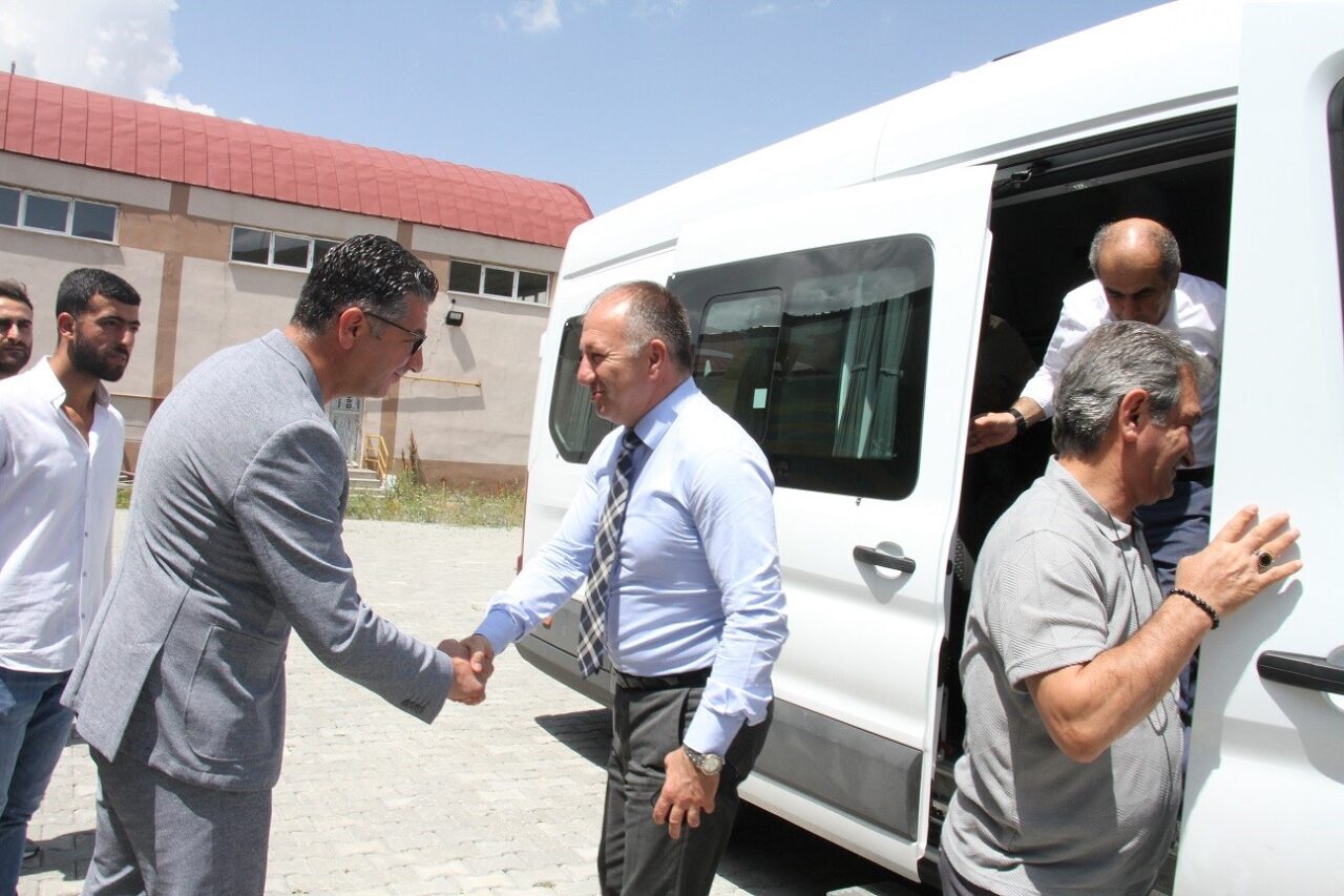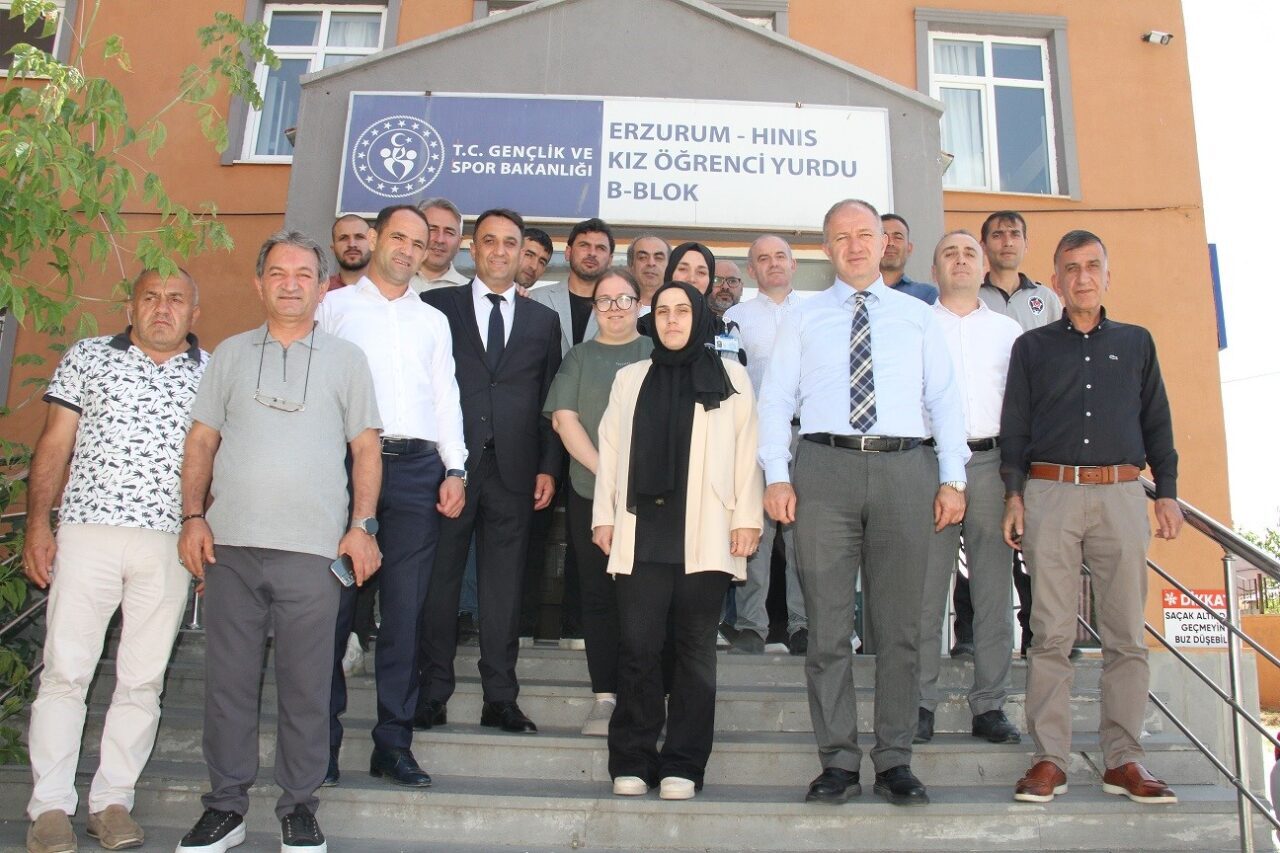 Genlik ve Spor İl Müdürü Levent Çakmur, Hizmet ve Şube Müdürlerinin ilçe ziyaretlerinde ikinci durağı Hınıs oldu. Yurtlar ve Spor tesislerinde incelemelerde bulunan GSİM Kurmayları, Hınıs Gençlik ve Spor İlçe Müdürü Mahmut Çağlayan ile Hınıs Kaymakamı olarak atanan Onur Bektaş’a hayırlı olsun dileklerini iletti. İl Müdürü Çakmur, ziyaret anısına Kaymakam Bektaş’a ‘Erzurum’ yazılı Milli takım forması hediye etti.