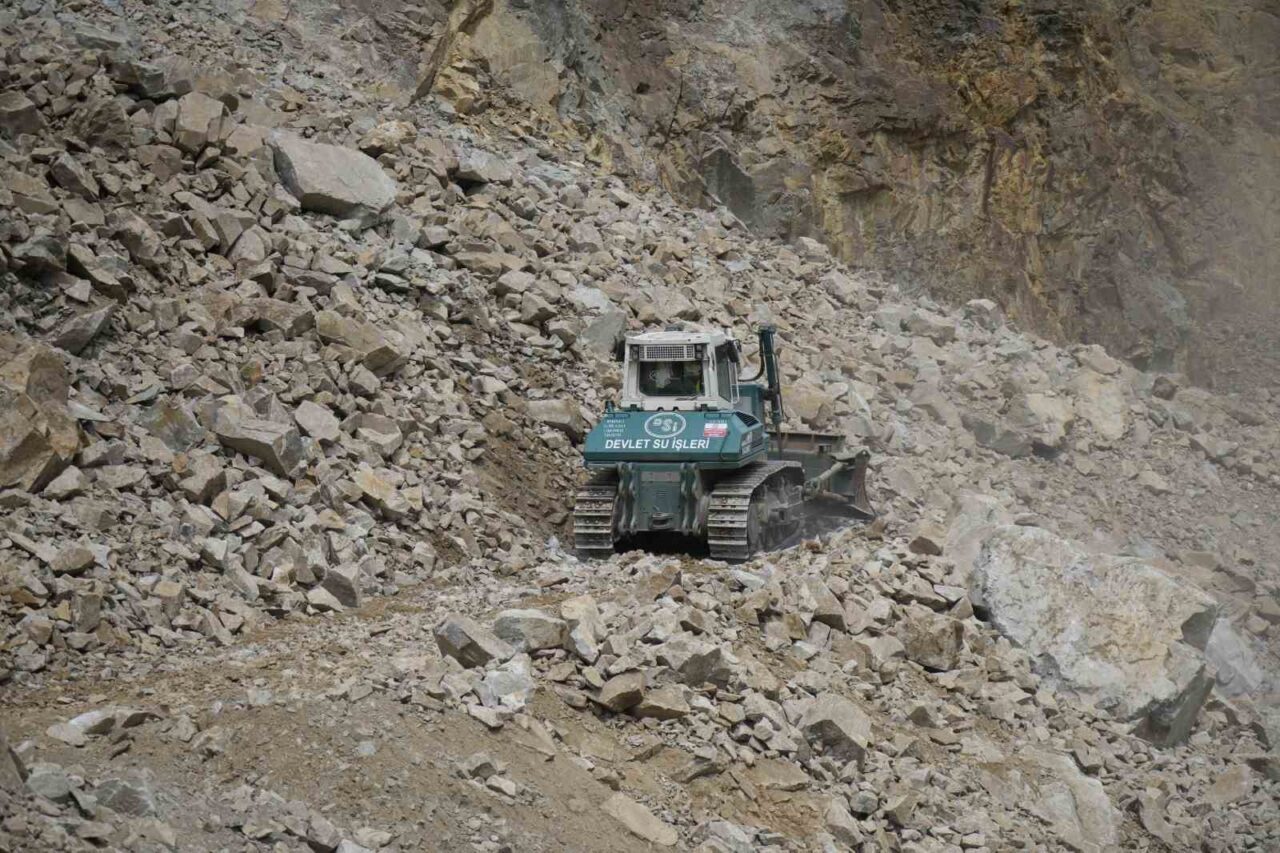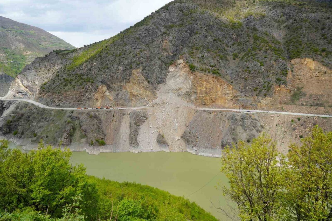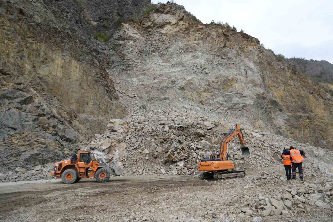 Kürtün ilçesine bağlı Karaçukur Mahallesi İncirli Köyü mevkiinde geçtiğimiz Salı günü meydana gelen ve Gümüşhane-Giresun kara yolunu tamamen ulaşıma kapatan heyelanı temizleme çalışmaları aralıksız sürüyor. Yetkililer bölgede riskin devam ettiğini ifade ederken ekipler ise çalışmalarını dikkatle yürütüyor. Heyelanın yaşandığı bölgede inceleme yapan dağcılar, riskli kayaları düşürürken DSİ ve Karayolları’na ait iş makineleri de devasa kayaları Kürtün Barajı’na dökerek temizliyor.