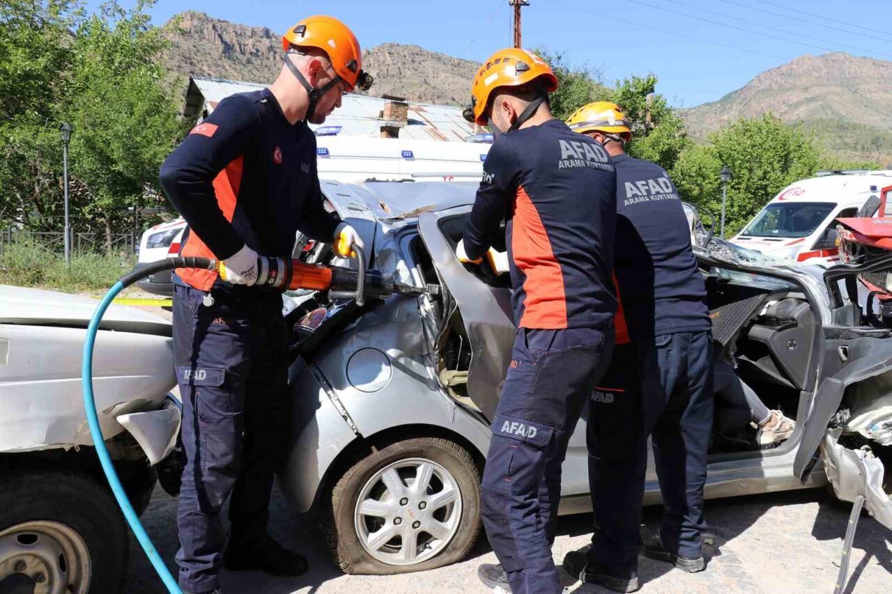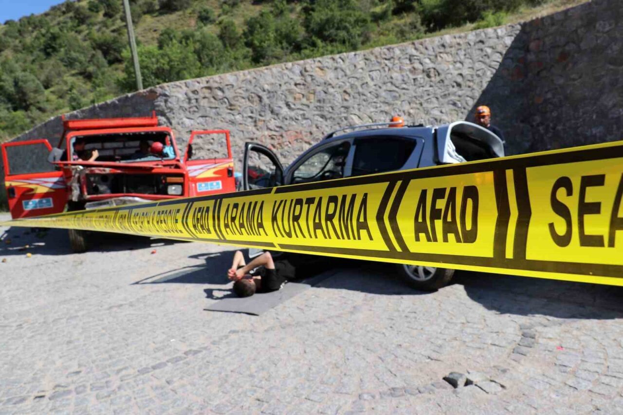 AFAD ve İl Emniyet Müdürlüğü ekiplerinin de destek verdiği tatbikatta senaryo gereği yaşanan çoklu sıkışmalı trafik kazası, gerçek bir operasyonu aratmayacak detaylarla kurgulandı.