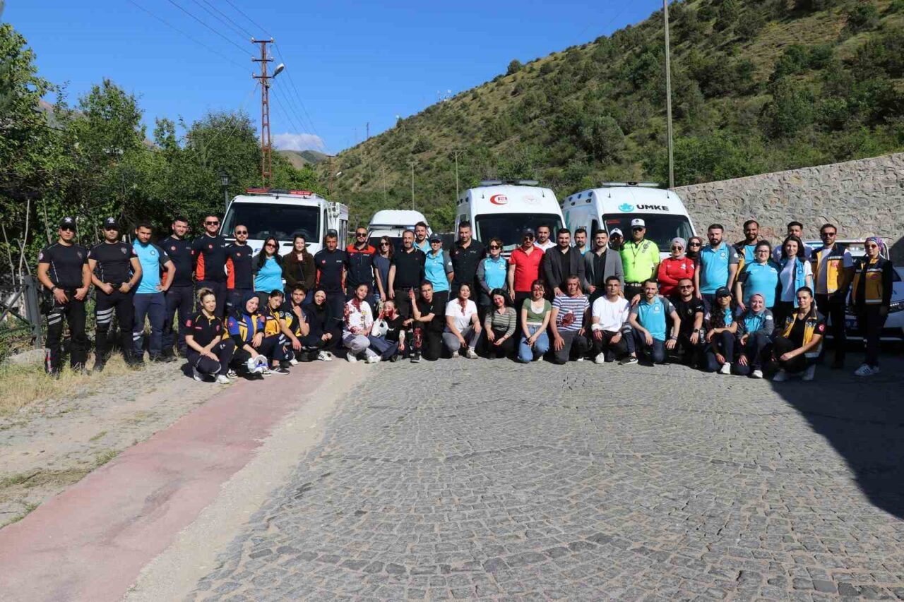 Gümüşhane’de Ulusal Medikal Kurtarma Ekipleri (UMKE) tarafından gerçekleştirilen tatbikat gerçeğini aratmadı. Ekipler 3 aracın karıştığı trafik kazasını konu alan tatbikatta 9 yaralıya müdahale etti.