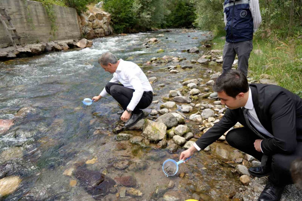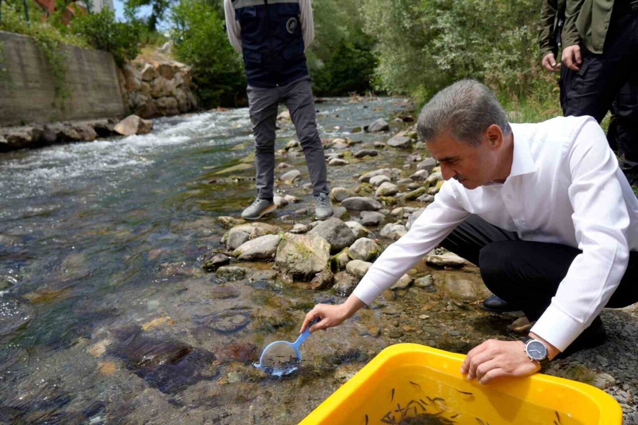 Torul ilçesindeki Çit Deresi mevkiinde 10 bin kırmızı benekli alabalık doğayla buluşturuldu.