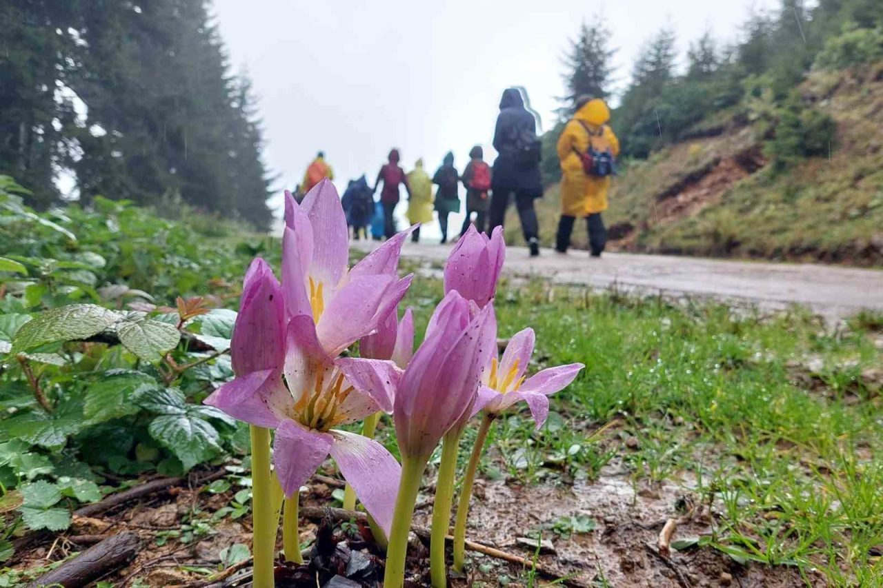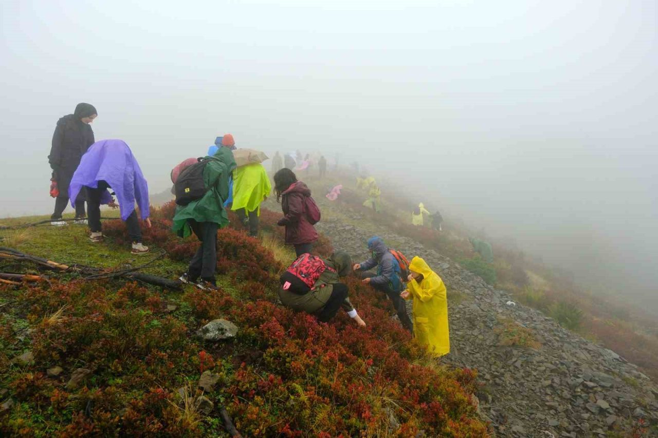 Genelde yağmur altında gerçekleşen yürüyüşte zaman zaman sıyrılan bulutların ardından eşsiz orman ve sis manzaralarını izleyen sporcular, kardelen çiçekleri arasında ormanlık kesimdeki yürüyüşlerinde önlerine çıkan likarpaları (Yaban mersini) yağmura aldırmadan topladı.