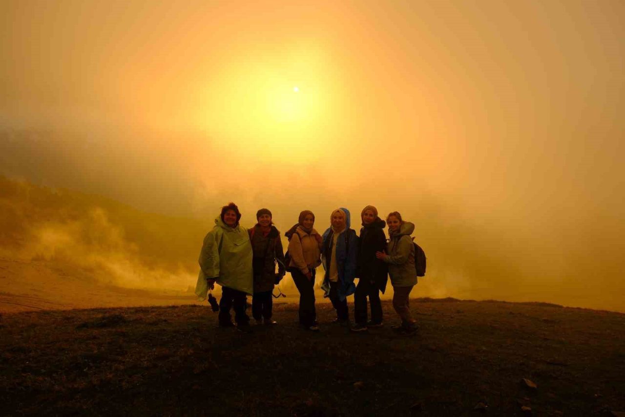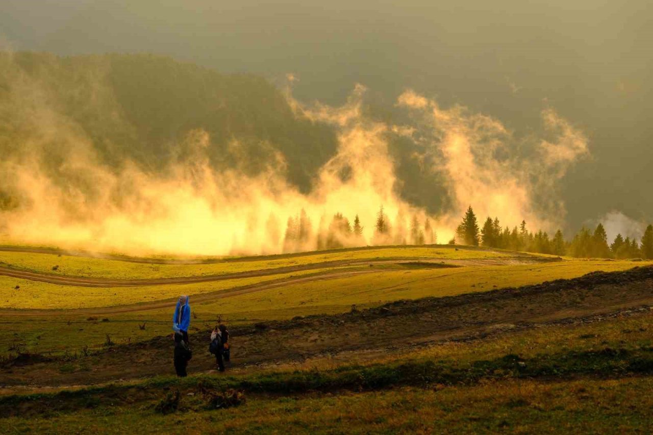 Akşam saatlerinde otantik atmosferi ve huzurlu ortamıyla ziyaretçilerine unutulmaz bir deneyim sunan Çetlüce Yaylasına ulaşan ekipler, bu sırada bulutların dağılmasıyla birlikte eşsiz gün batımı manzarasına şahitlik yaptı.