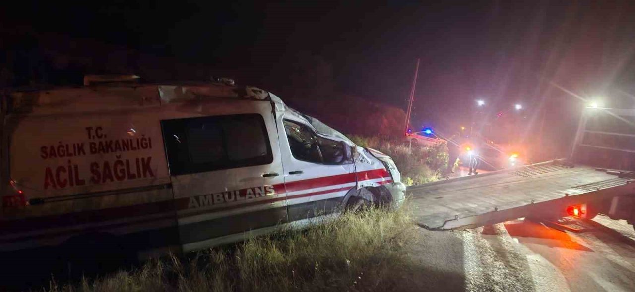 Gümüşhane’de hasta nakli dönüşü yağış nedeniyle kayganlaşan yolda kontrolden çıkan ambulansın takla attığı kazada 3 sağlık personeli yaralandı.