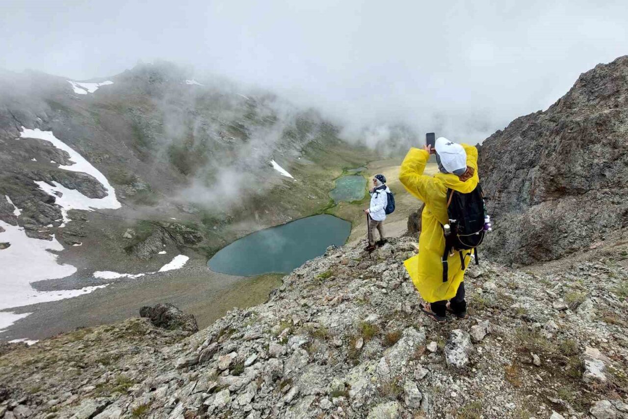 Yaklaşık 3 bin metre yükseklikten Acembol Gölleri’nin büyüleyici manzarasını sis perdesi altından izleyen sporcular, soğuk havaya rağmen doğanın sunduğu eşsiz güzelliklerin tadını çıkardı.