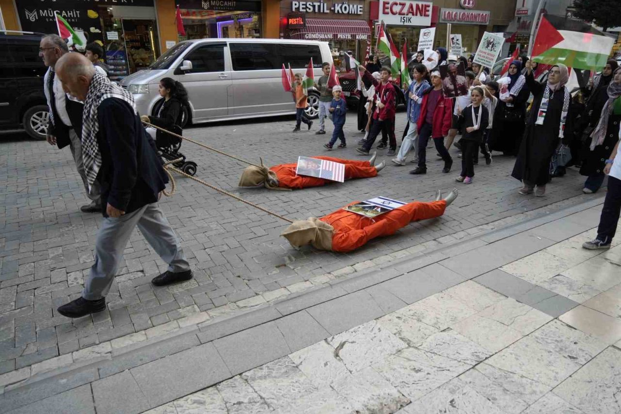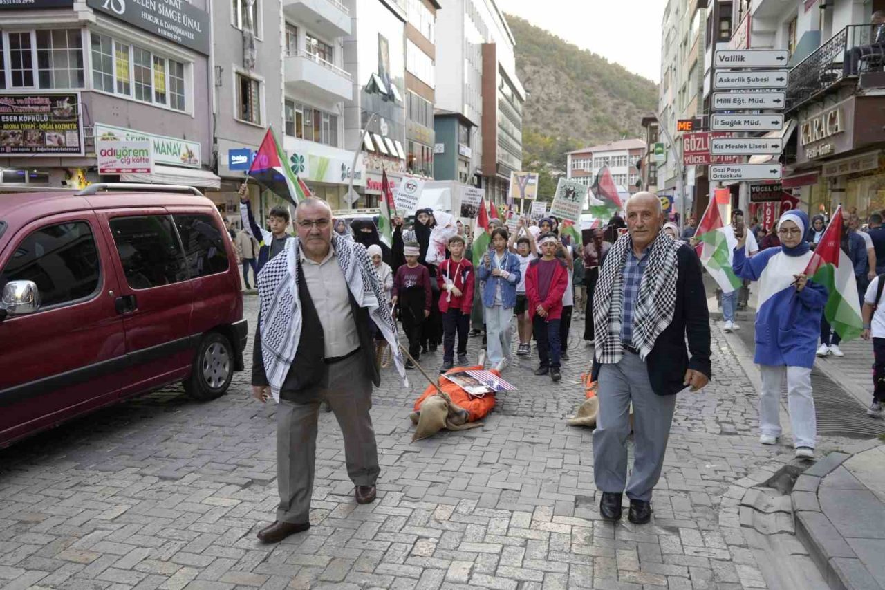Gümüşhane’de 7 Ekim Aksa Tufanı Operasyonu’nun yıl dönümünde Gazze’ye destek için yürüyüş düzenlendi.