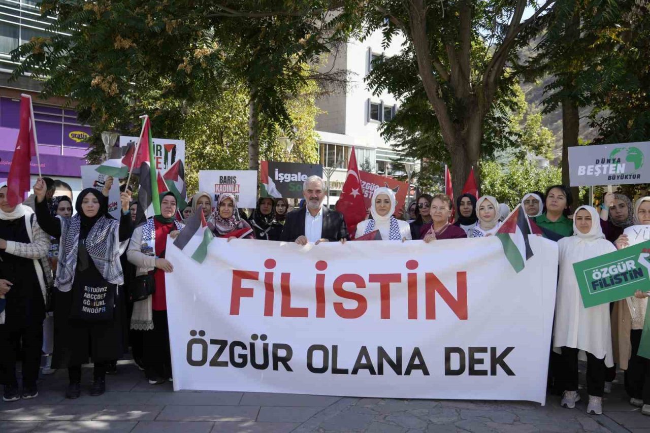 Gazze’de yaşanan zulme dikkat çeken AK Parti Gümüşhane Kadın Kolları Başkanı Duygu Sena Kurt, “Biz bugün bütün kimliklerimizden sıyrılarak sadece kadın kimliğimizle buradayız. Çünkü bu mesele ne dünyadaki rollerimizle, ne taşıdığımız unvanlarla, ne de sahip olduklarımızla ilgilidir bu mesele insanlık meselesidir. Bugün Türkiye’den tüm dünyaya tek bir şey söylüyoruz. Barış kadınla mümkündür. Slogan atmıyoruz vicdanlarımızla haykırıyoruz. Çünkü bazı sessizlikler vardır ki, arşı yere indirir. Ve bizim sessizliğimiz, Gazze’nin en gür çığlığı olacaktır” dedi.