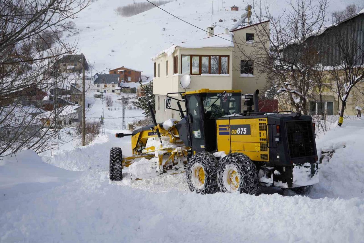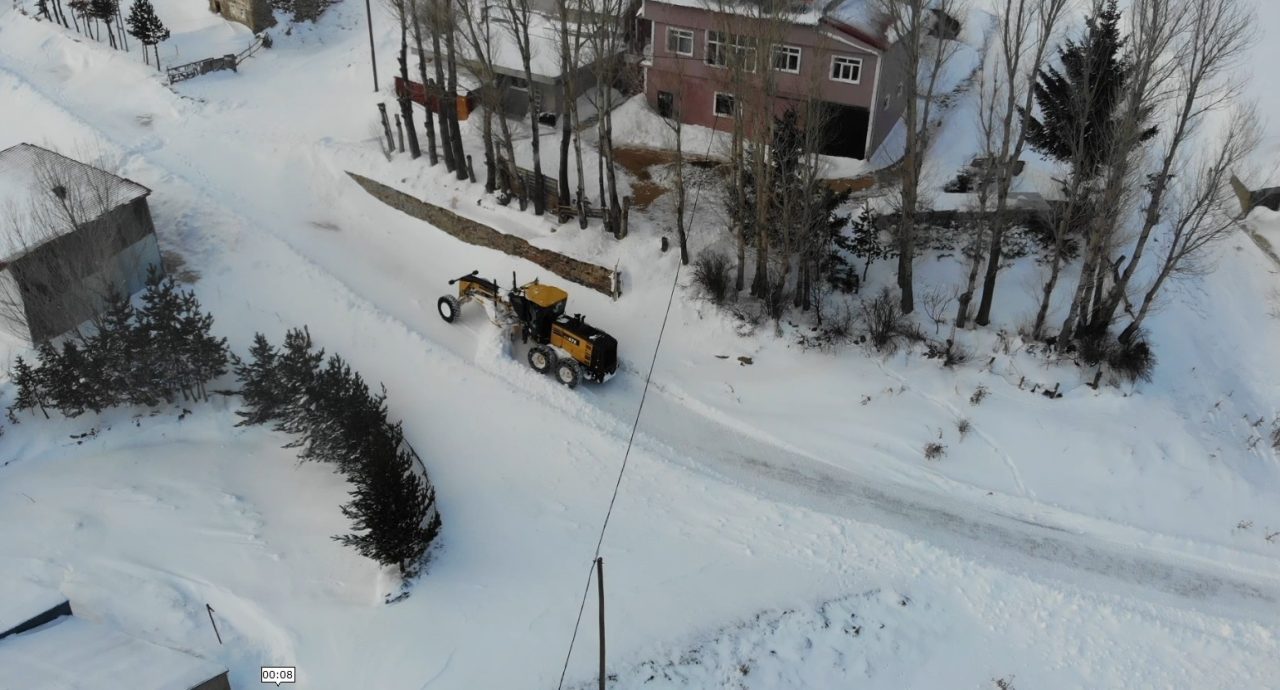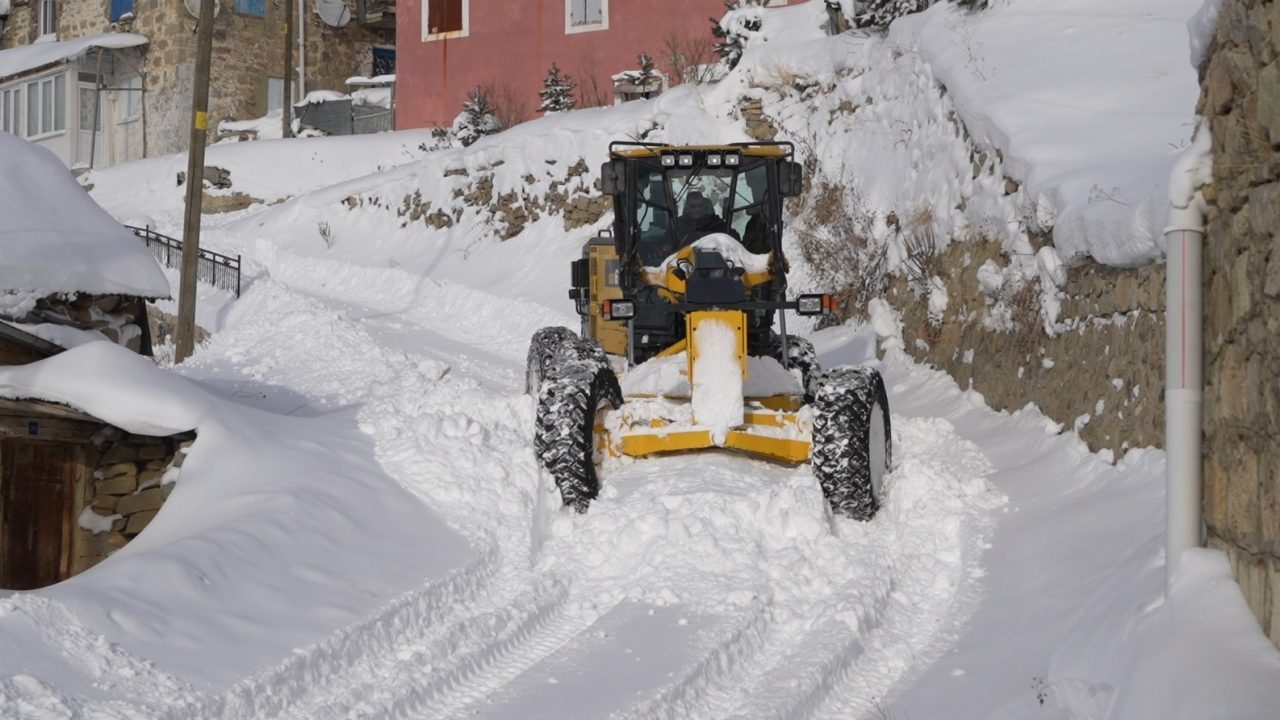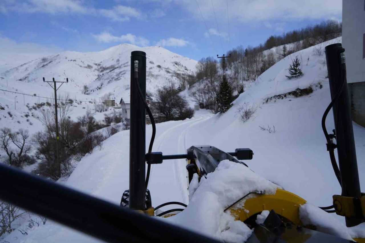 Gümüşhane’de etkili olan kar yağışı sonrası kapanan köy yollarını ulaşıma açmak için ekiplerin çalışması aralıksız sürüyor.