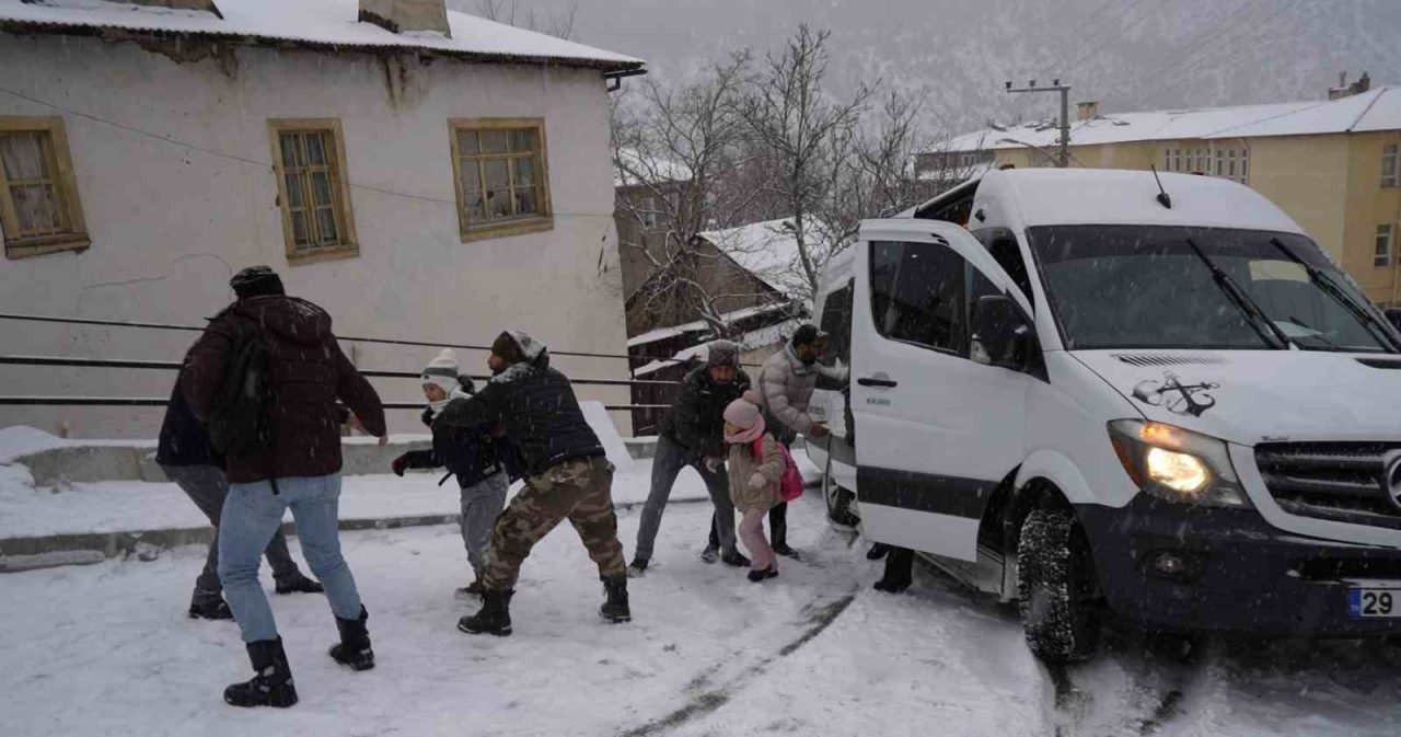 Gümüşhane’de sabah saatlerinde etkisini artıran kar yağışı sonrası buzlanan yollarda öğrenci dolu bir servis minibüsü kayarak kontrolden çıkarken, başka bir araca çarparak durabildi.